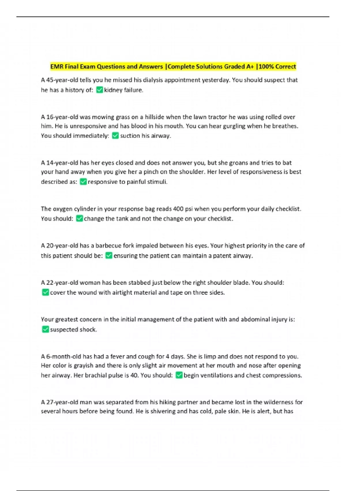 EMR Final Exam Questions and Answers |Complete Solutions Graded A+ |100% Correct