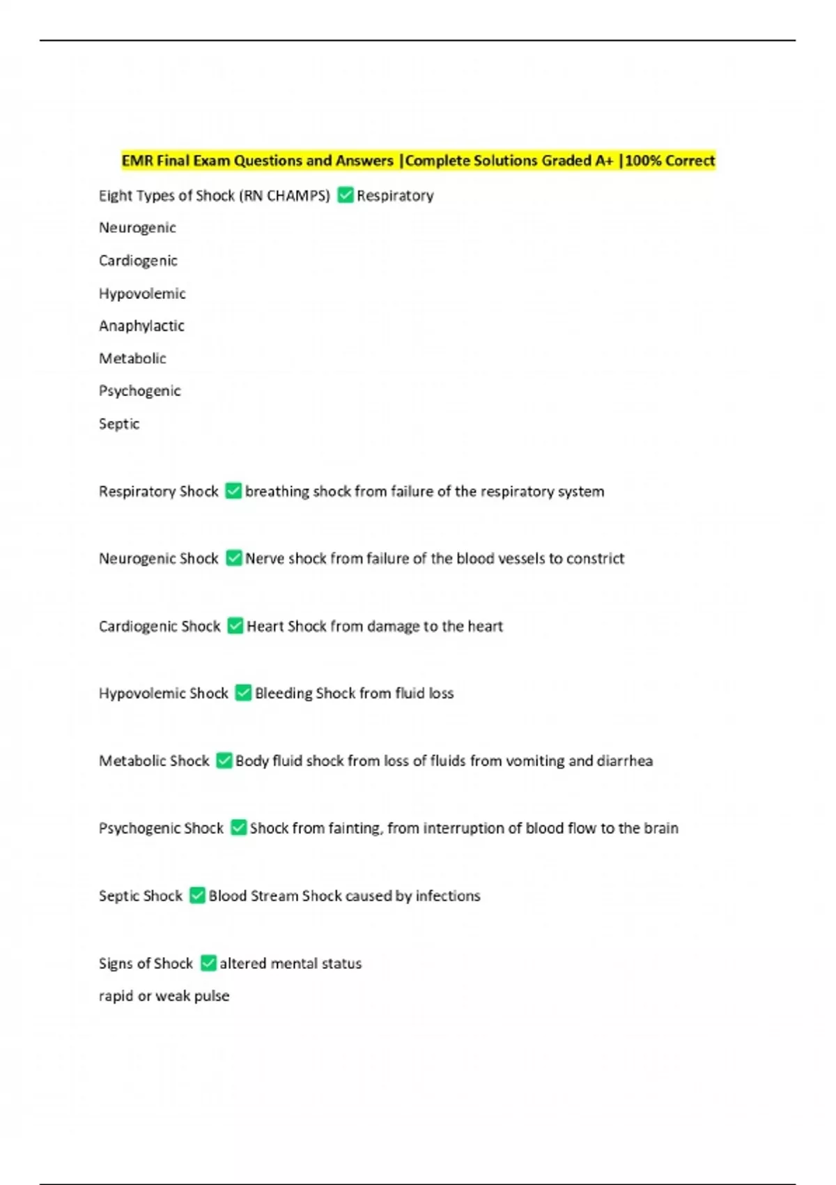 EMR Final Exam Questions and Answers |Complete Solutions Graded A+ |100% Correct