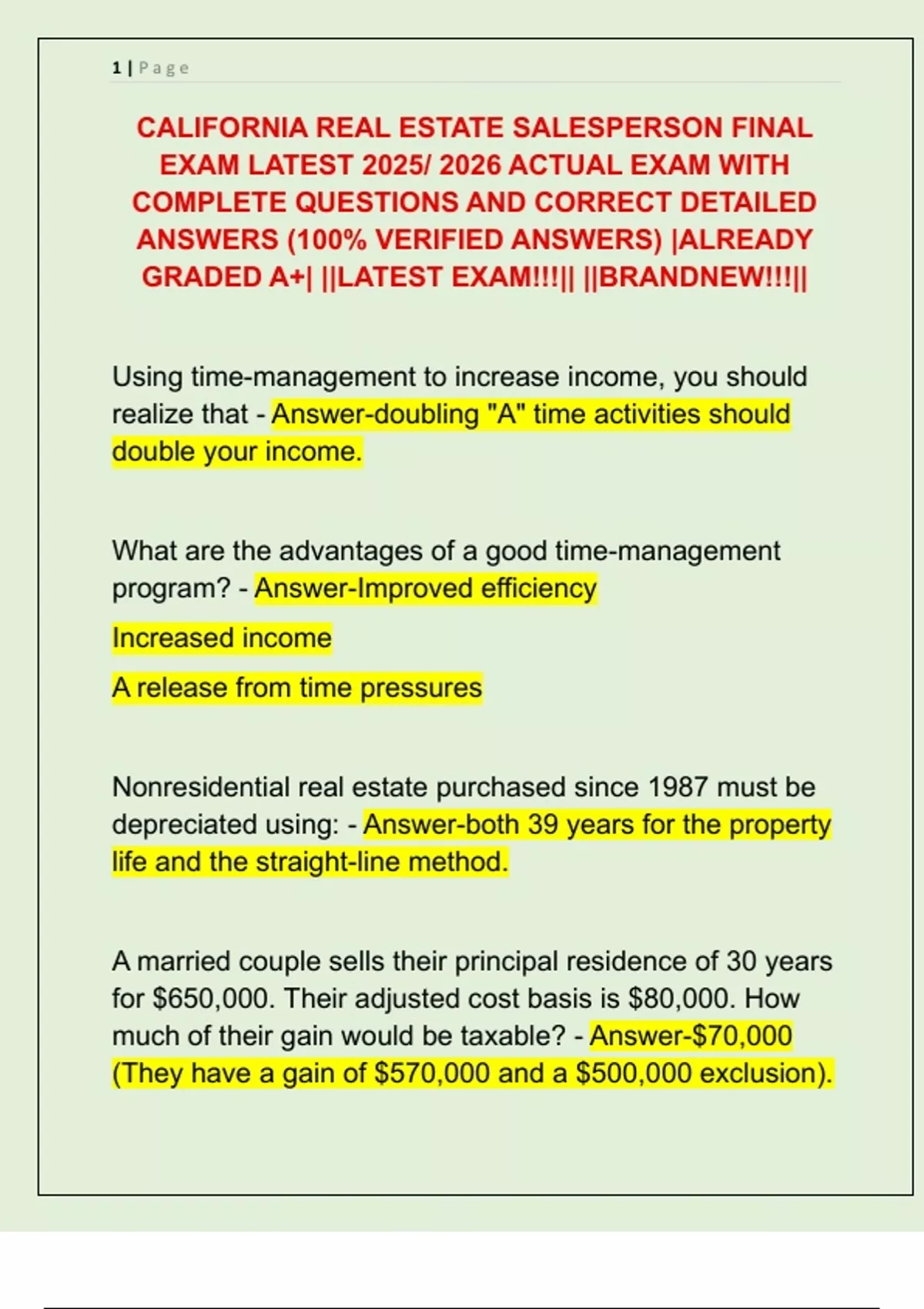 CALIFORNIA REAL ESTATE SALESPERSON FINAL