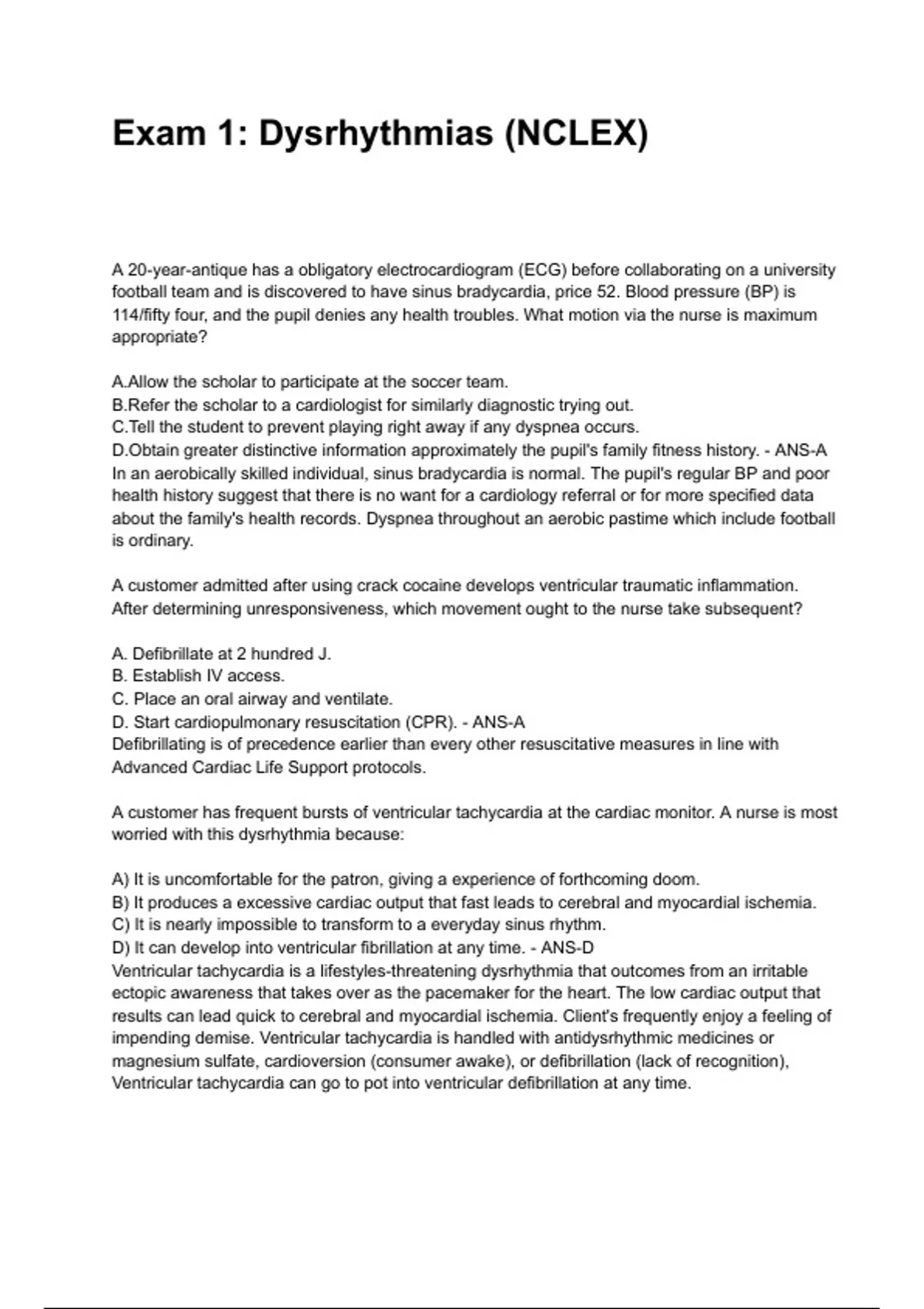 football team and is discovered to have sinus bradycardia, price 52. Blood pressure (BP) is