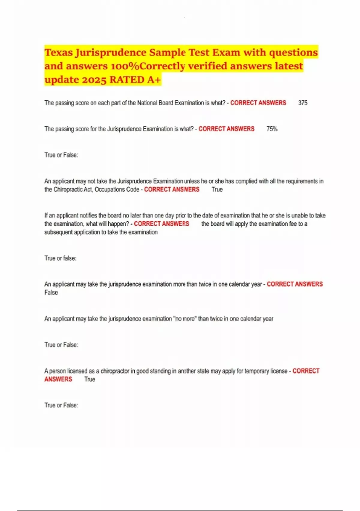 Texas Jurisprudence Sample Test Exam with questions and answers 100%Correctly verified answers latest update 2025 RATED A+