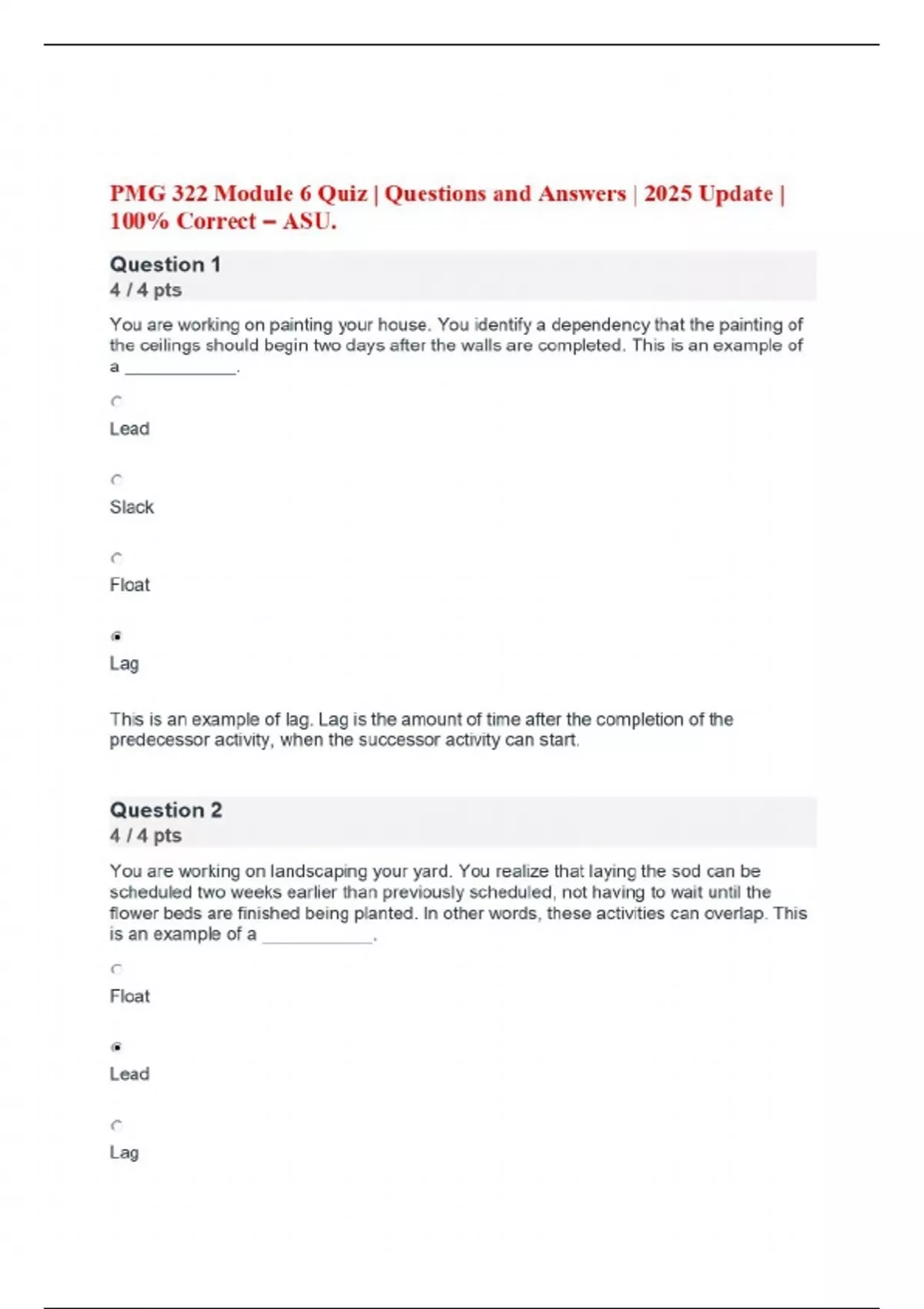 PMG 322 Module 6 Quiz | Questions and Answers | 2025 Update | 100% Correct – ASU.
