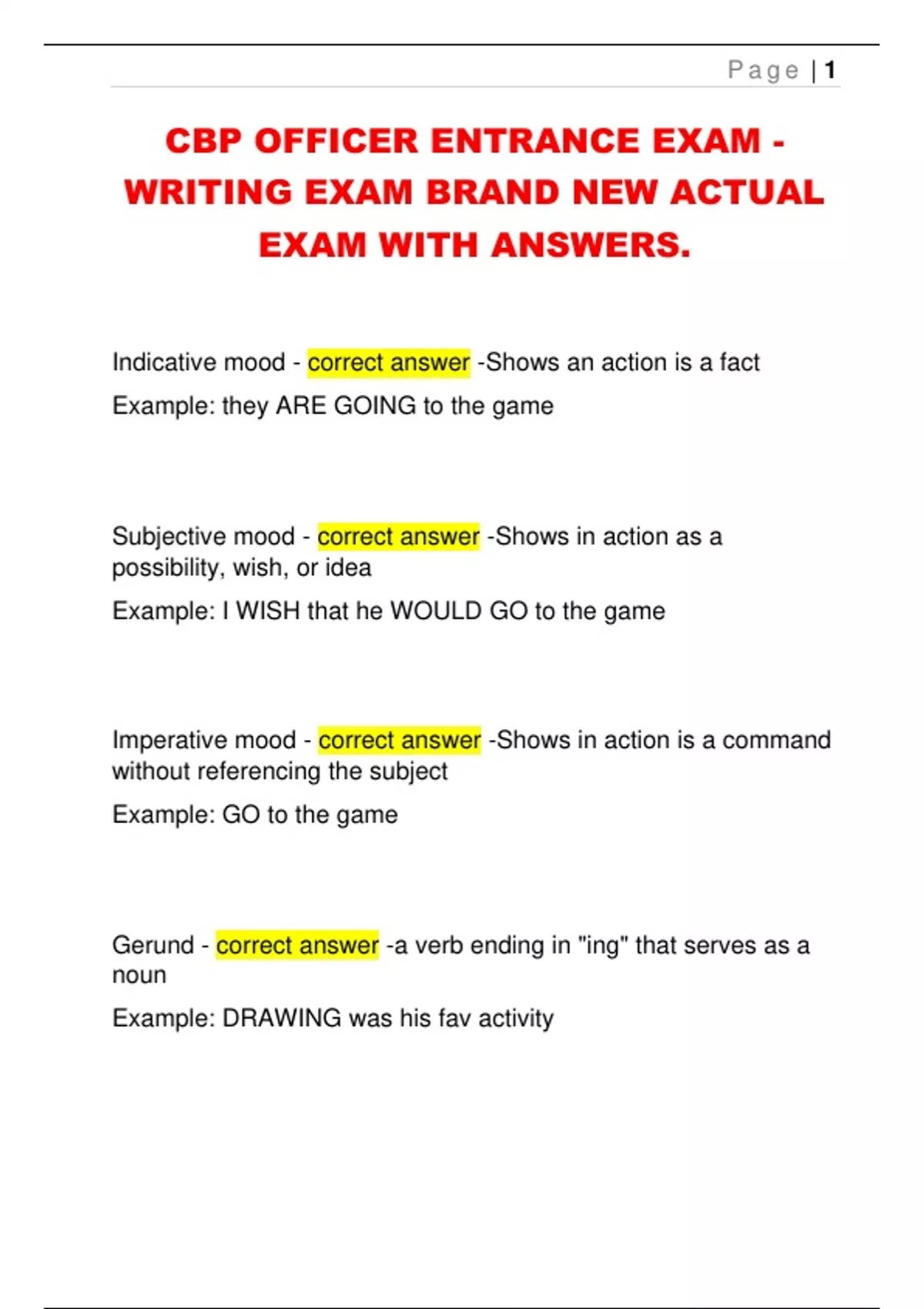 CBP OFFICER ENTRANCE EXAM -