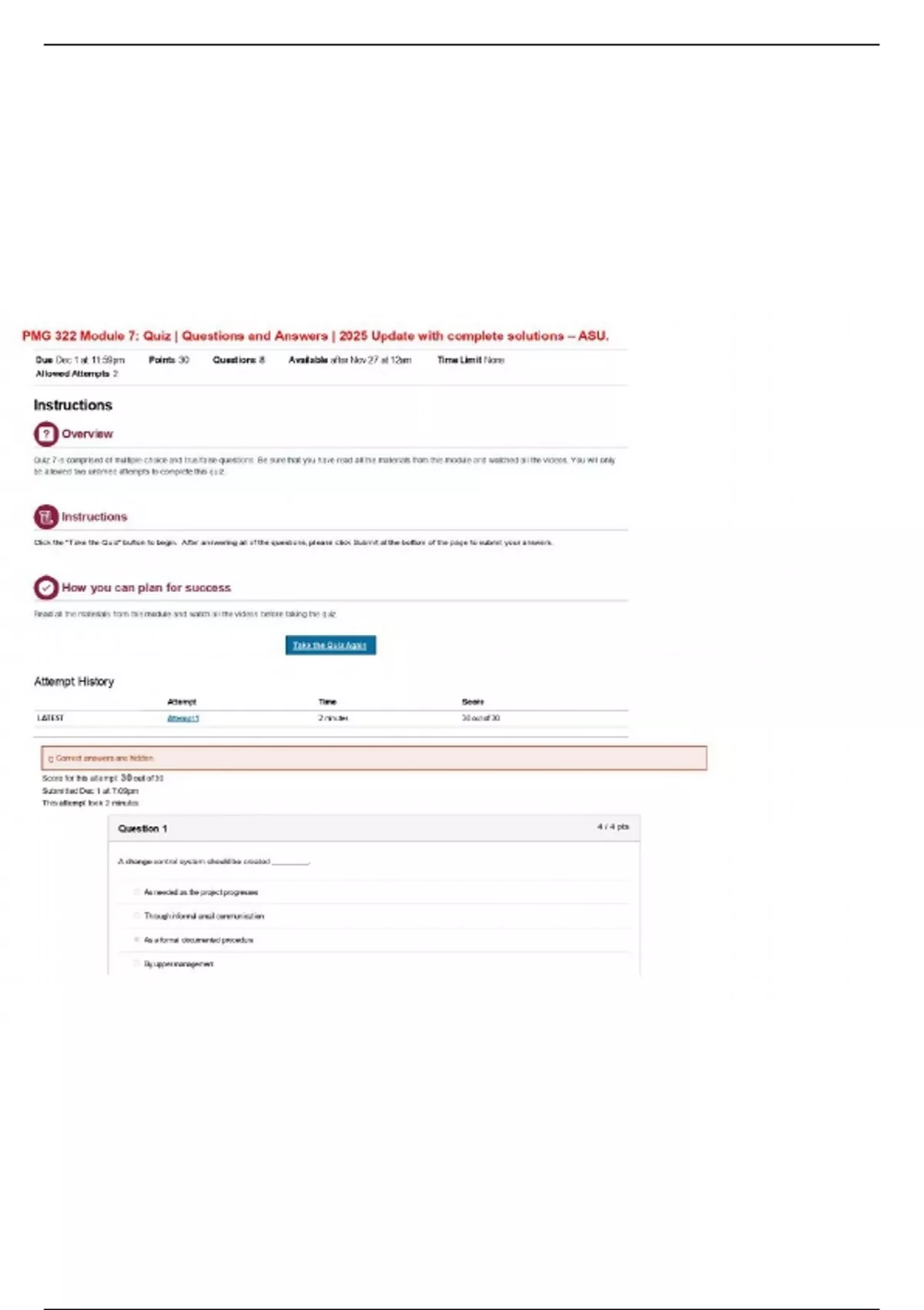 PMG 322 Module 7: Quiz | Questions and Answers | 2025 Update with complete solutions – ASU.