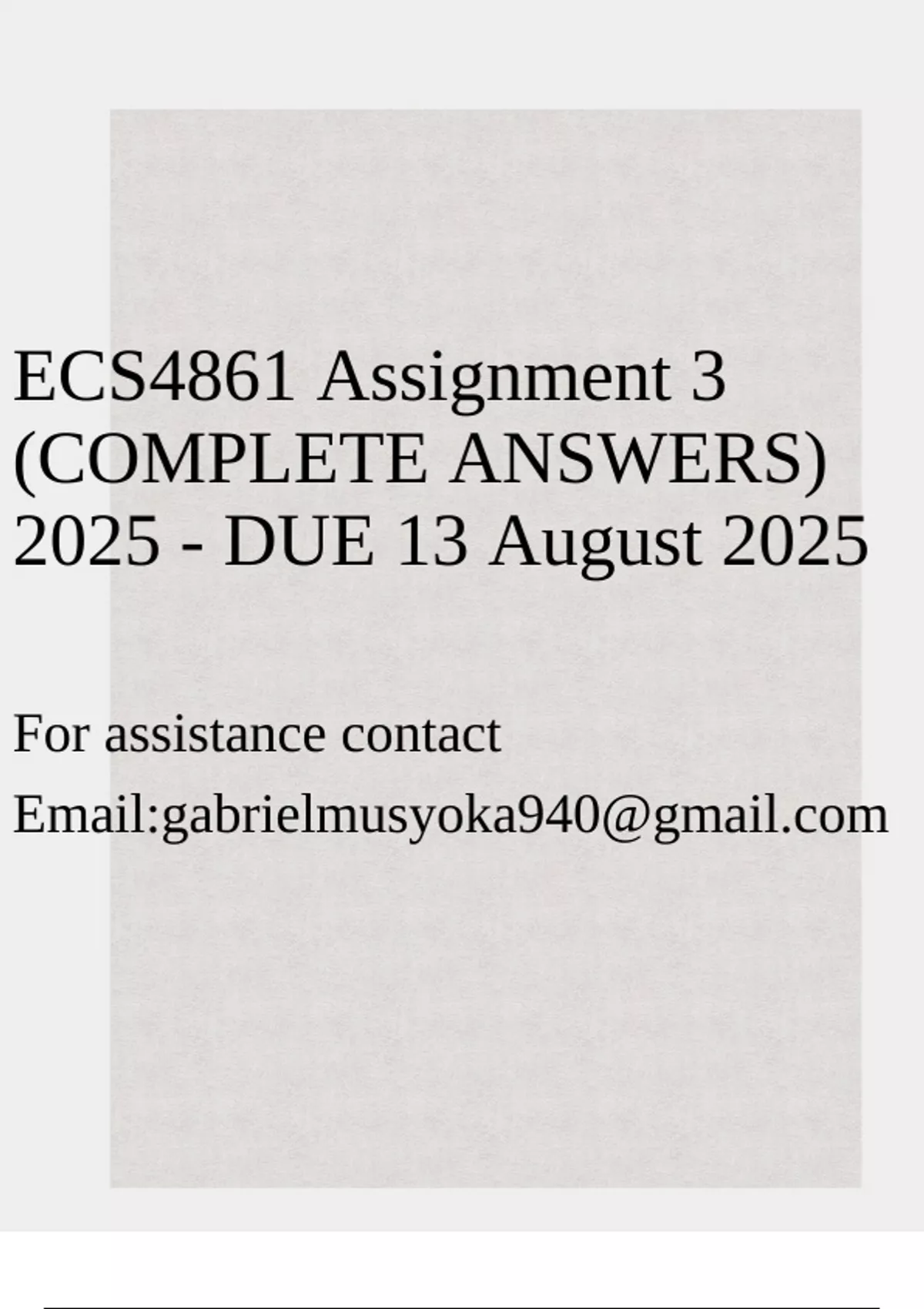 ECS4861 Assignment 3 (COMPLETE ANSWERS) 2025 - DUE 13 August 2025