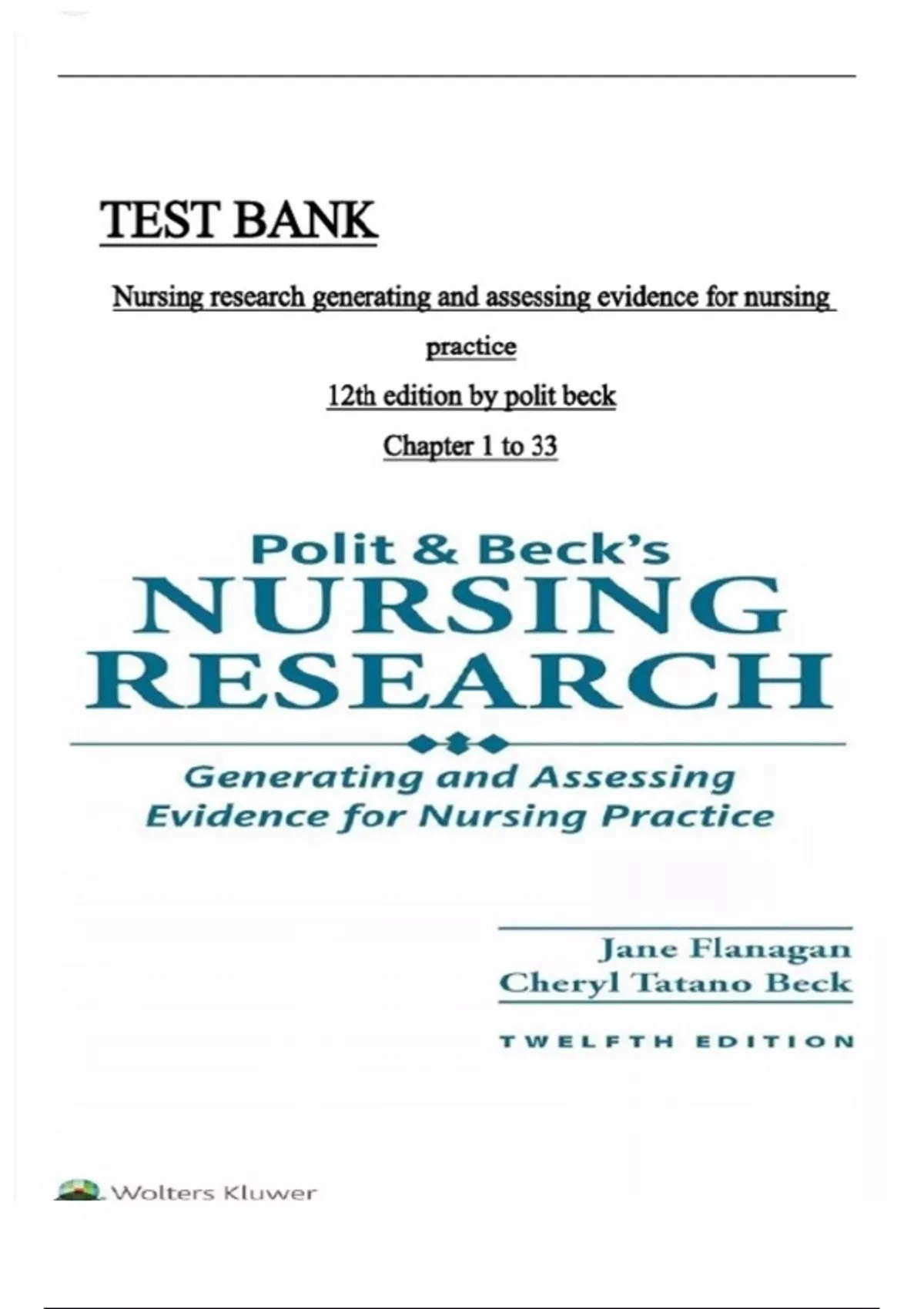 Test Bank- Polit & Beck's Nursing Research Generating and Assessing Evidence for Nursing Practice 12Th Edition ( CHERYL TATANO BECK, 2025) Latest Edition || All Chapters