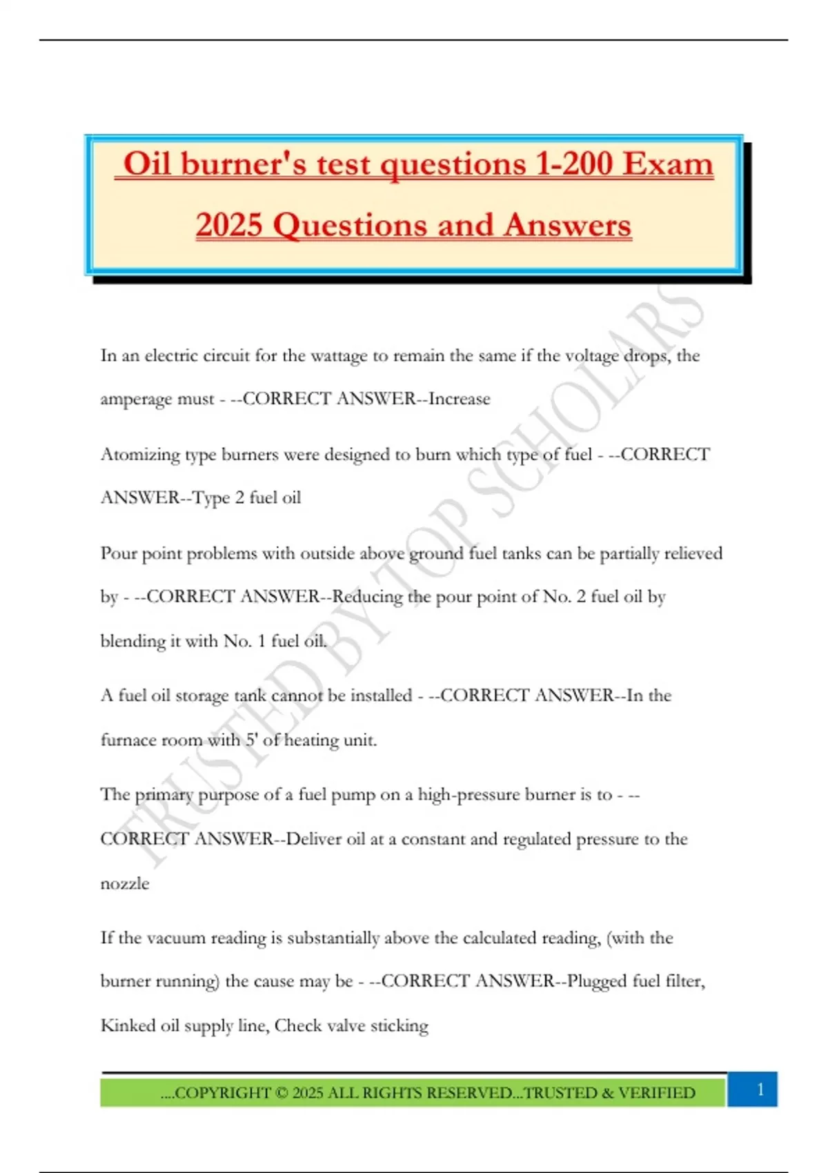 Oil burner's test questions 1-200 Exam