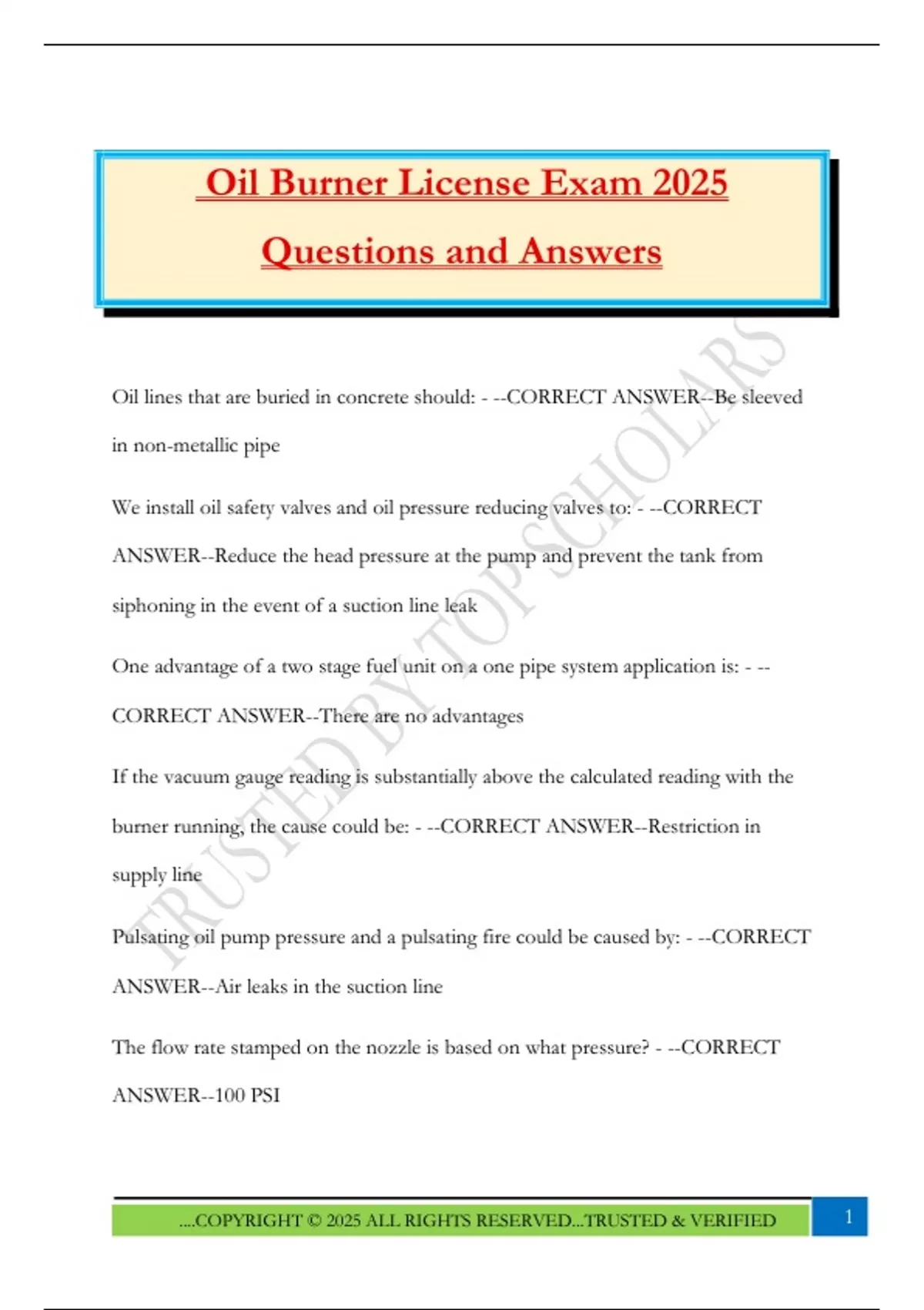 Oil lines buried in concrete should be: - --CORRECT ANSWER--Sleeved in