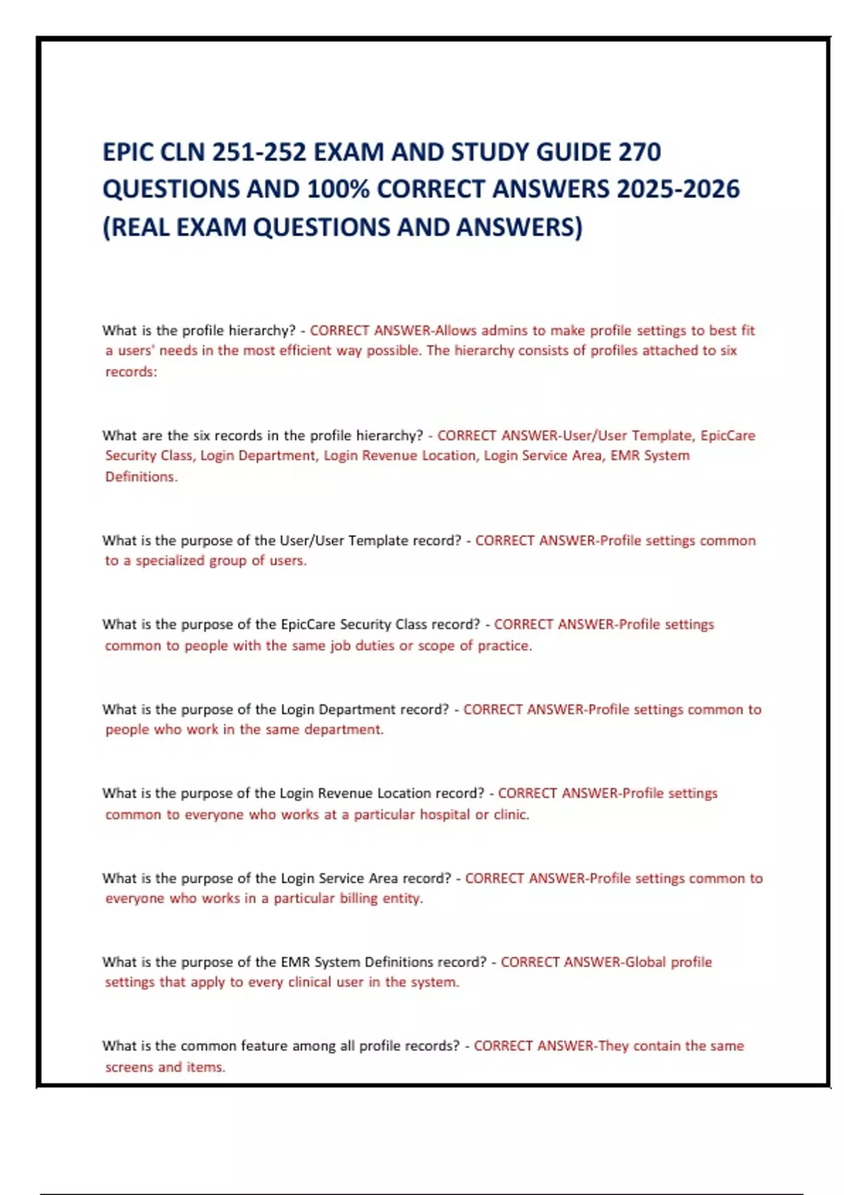 EPIC CLN 251-252 EXAM AND STUDY GUIDE 270