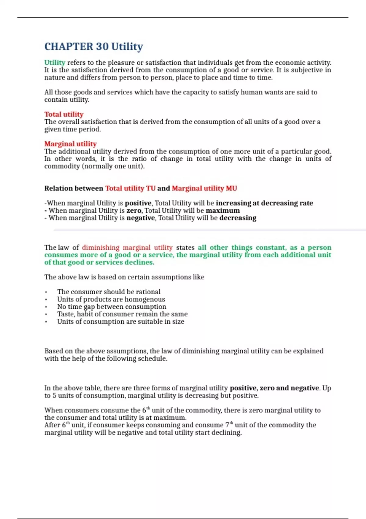decreases to zero and total utility TU become maximum. After 6 th unit, if consumer keeps