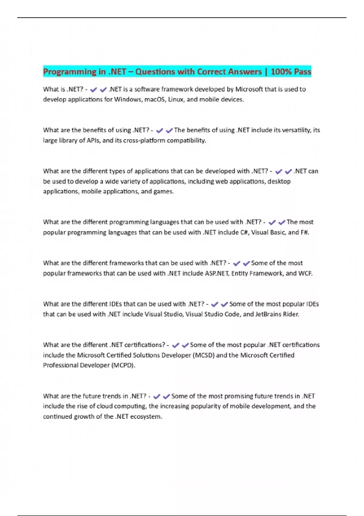 Programming in .NET – Questions with Correct Answers | 100% Pass