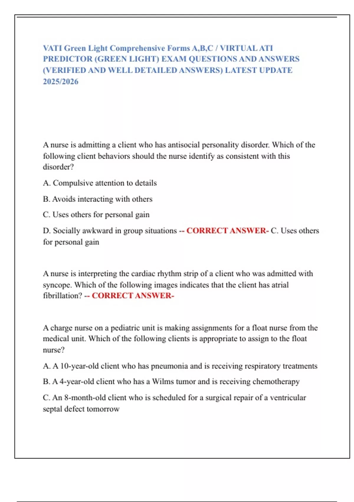 PREDICTOR (GREEN LIGHT) EXAM QUESTIONS AND ANSWERS