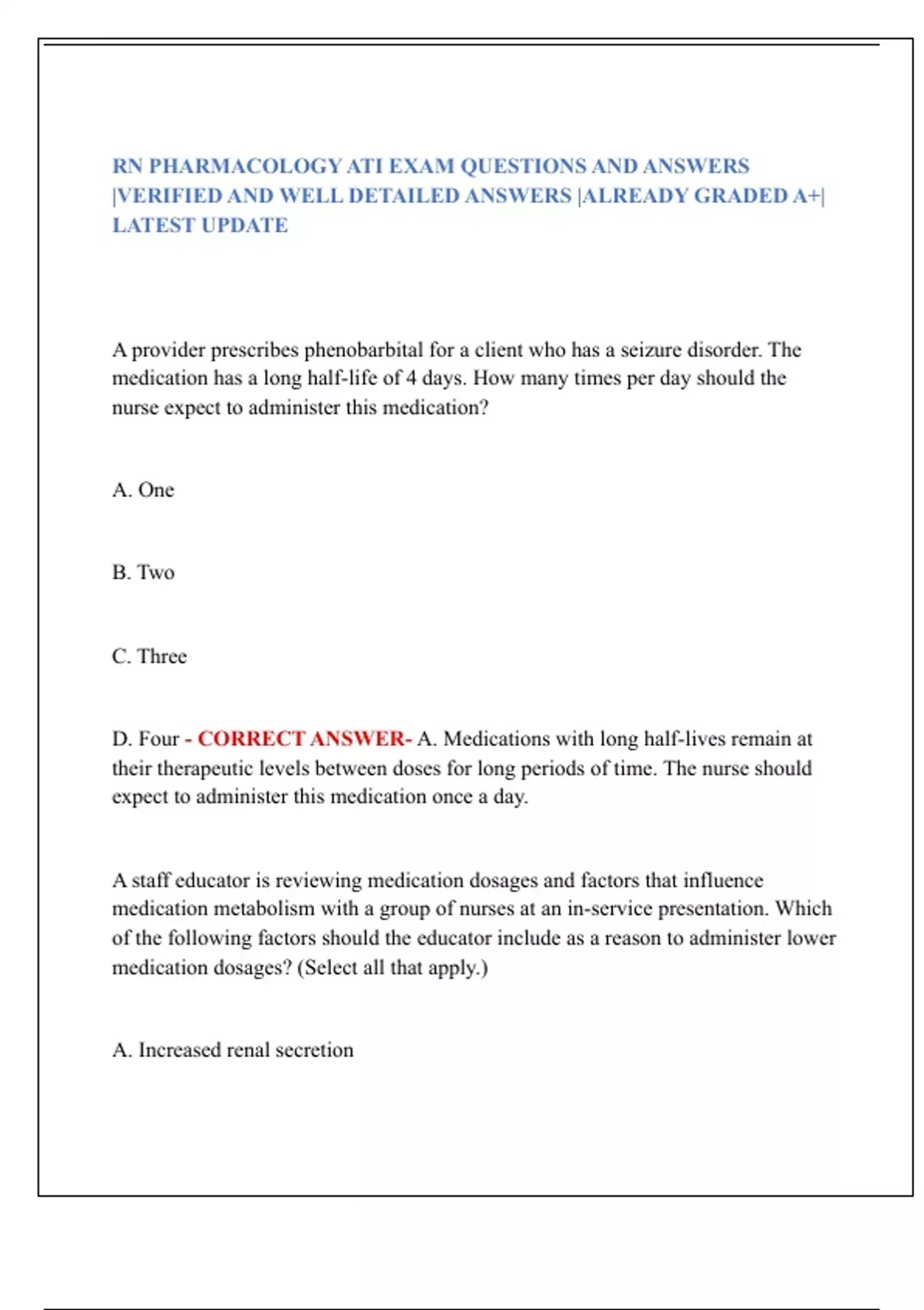 RN PHARMACOLOGY ATI EXAM QUESTIONS AND ANSWERS |VERIFIED AND WELL DETAILED ANSWERS |ALREADY GRADED A+| LATEST UPDATE