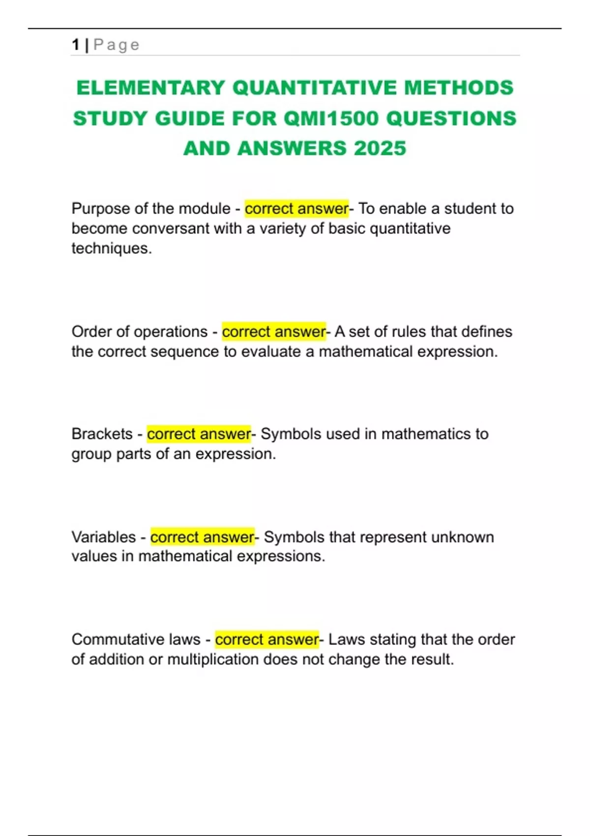 STUDY GUIDE FOR QMI1500 QUESTIONS