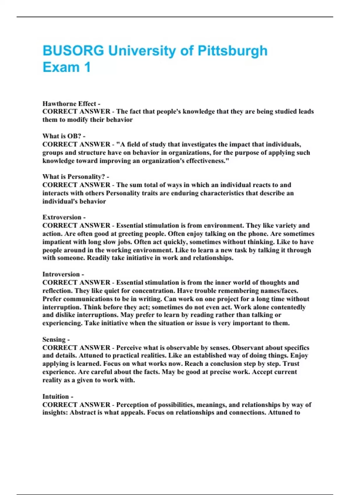 CORRECT ANSWER - Openness, Conscientiousness, Extroversion, Agreeableness,