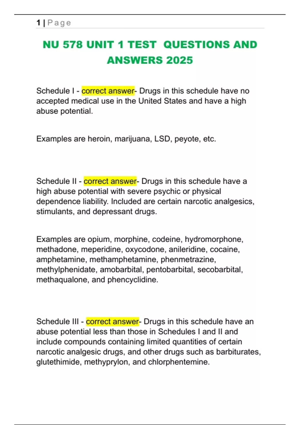 NU 578 UNIT 1 TEST QUESTIONS AND