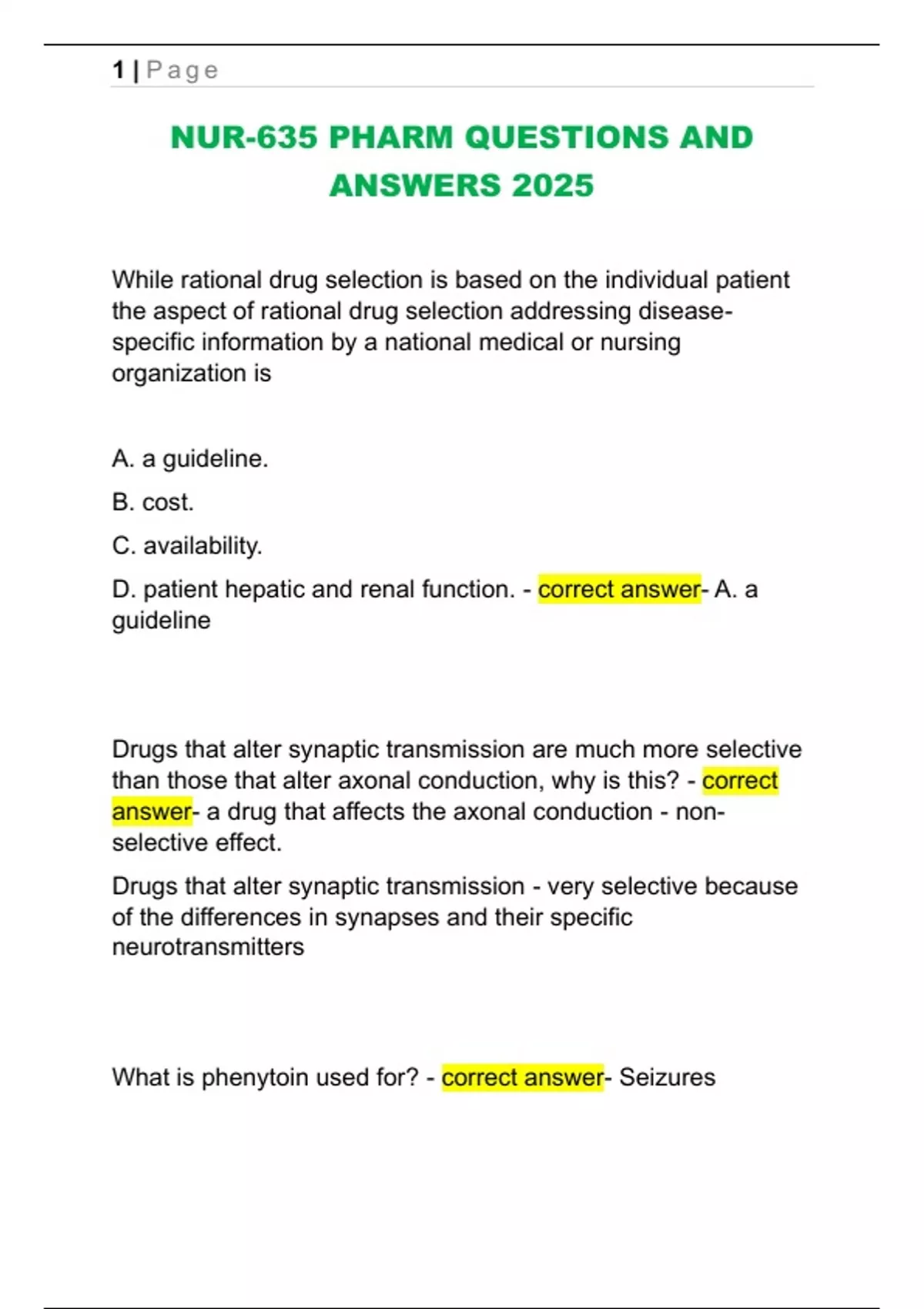 NUR-635 PHARM QUESTIONS AND ANSWERS 2025