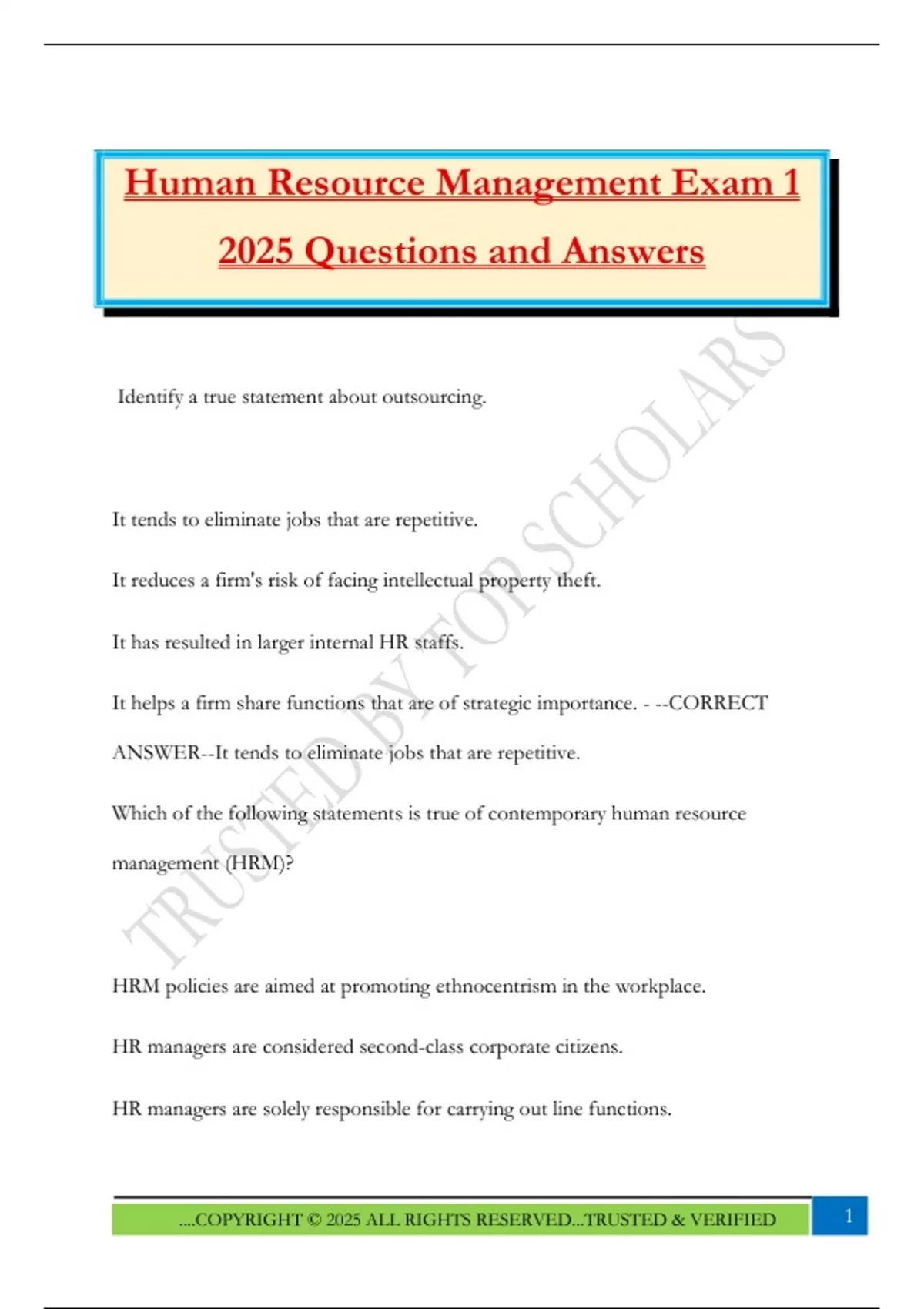 Human Resource Management Exam 1
