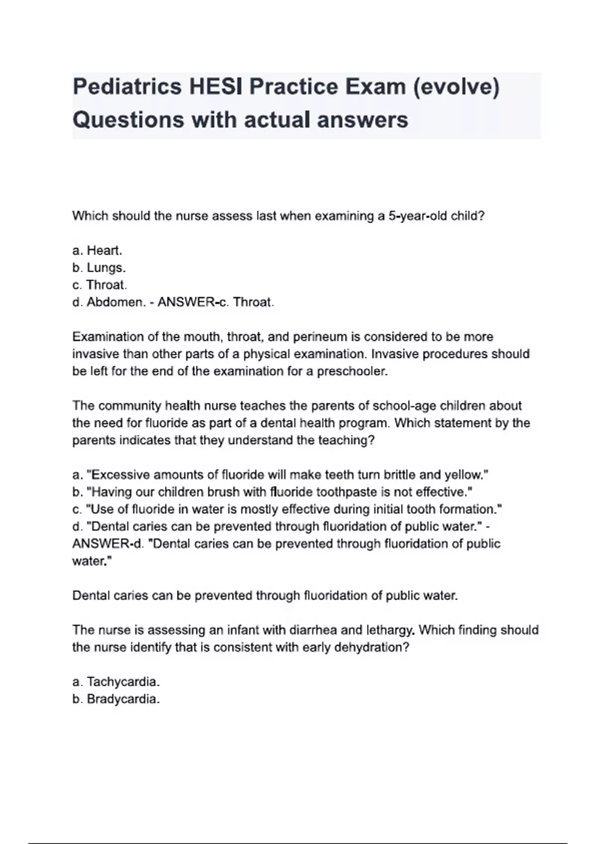 Pediatrics HESI Practice Exam (evolve) Questions with actual answer