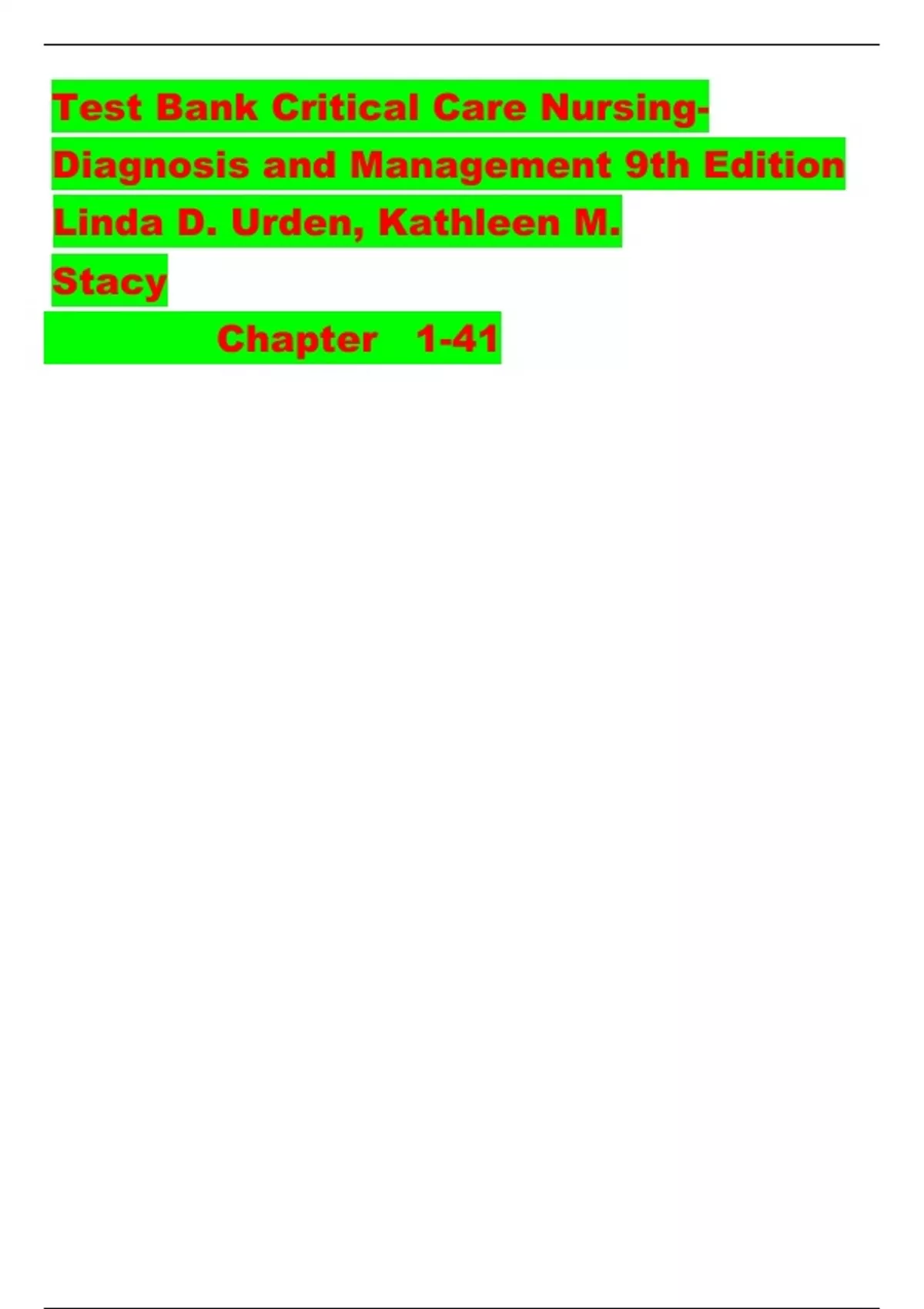 Test Bank Critical Care NursingDiagnosis and Management 9th Edition Linda D. Urden, Kathleen M. Stacy Chapter 1-41