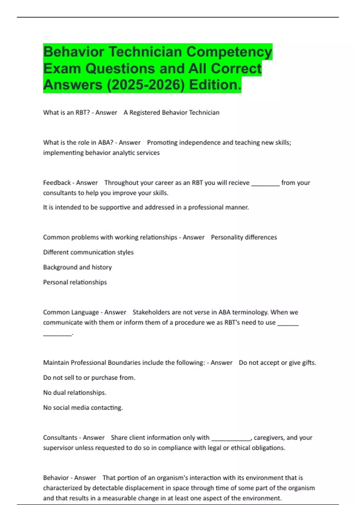 What is an RBT? - Answer A Registered Behavior Technician