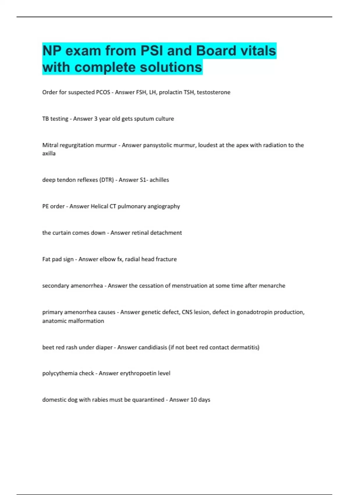 NP exam from PSI and Board vitals with complete solutions