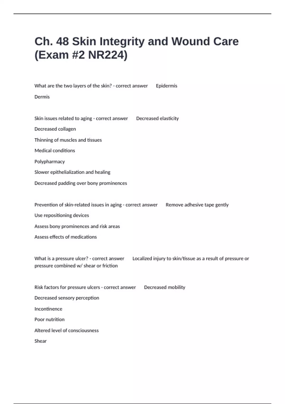 Risk factors for pressure ulcers - correct answer Decreased mobility
