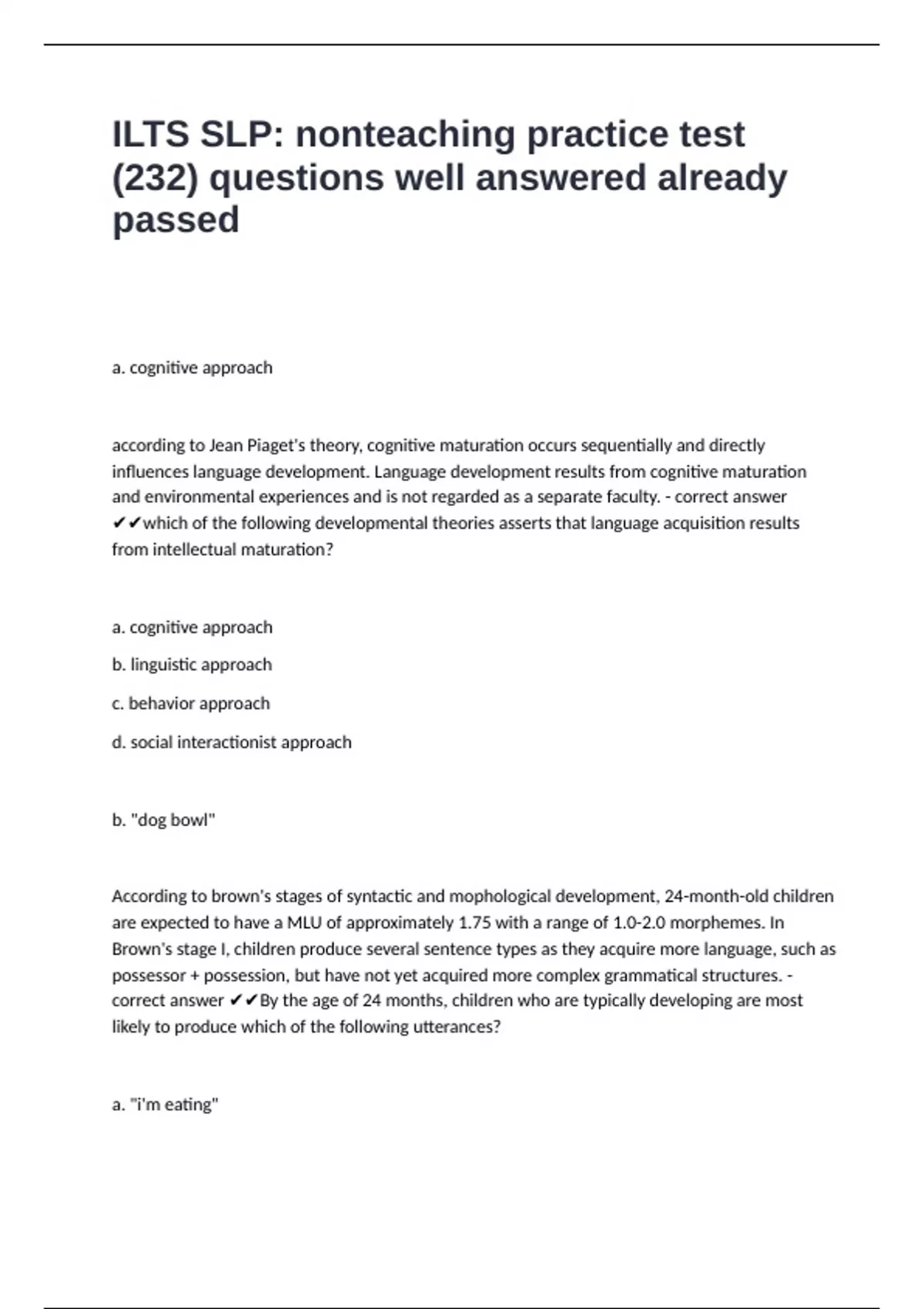 development. - correct answer ✔✔A child's rate of language development is most likely to be