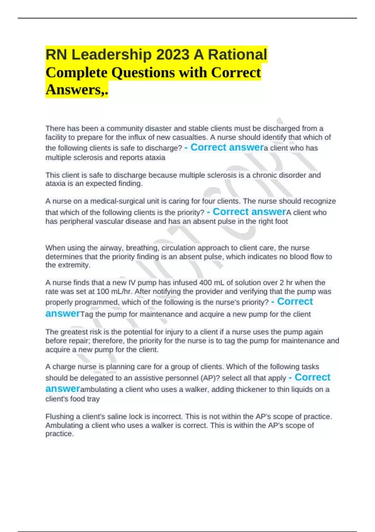 RN Leadership 2023 A Rational Complete Questions with Correct Answers,.RN Leadership 2023 A Rational Complete Questions with Correct Answers,.RN Leadership 2023 A Rational Complete Questions with Correct Answers,.