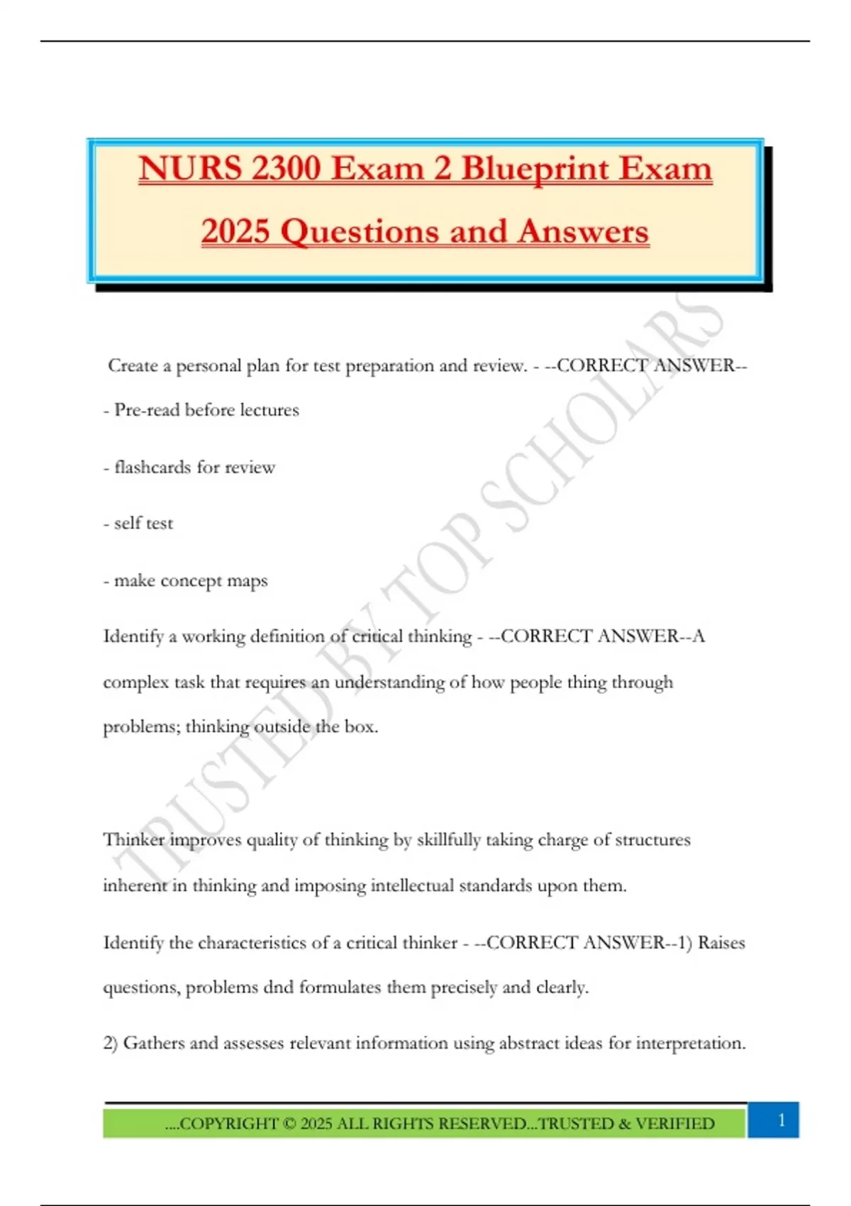 NURS 2300 Exam 2 Blueprint Exam 2025 Questions and Answers