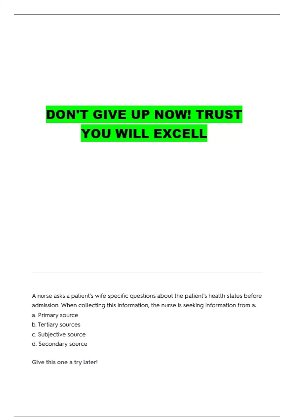, d. Secondary source
