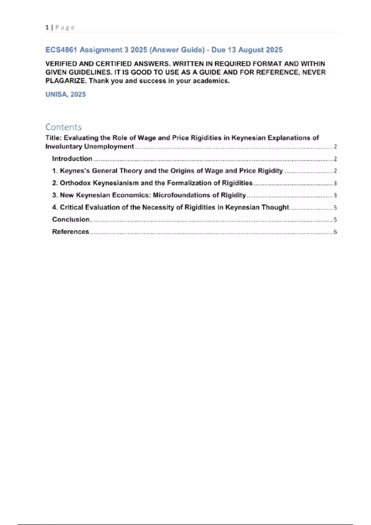 ECS4861 Assignment 3 2025 Questions and detailed answers