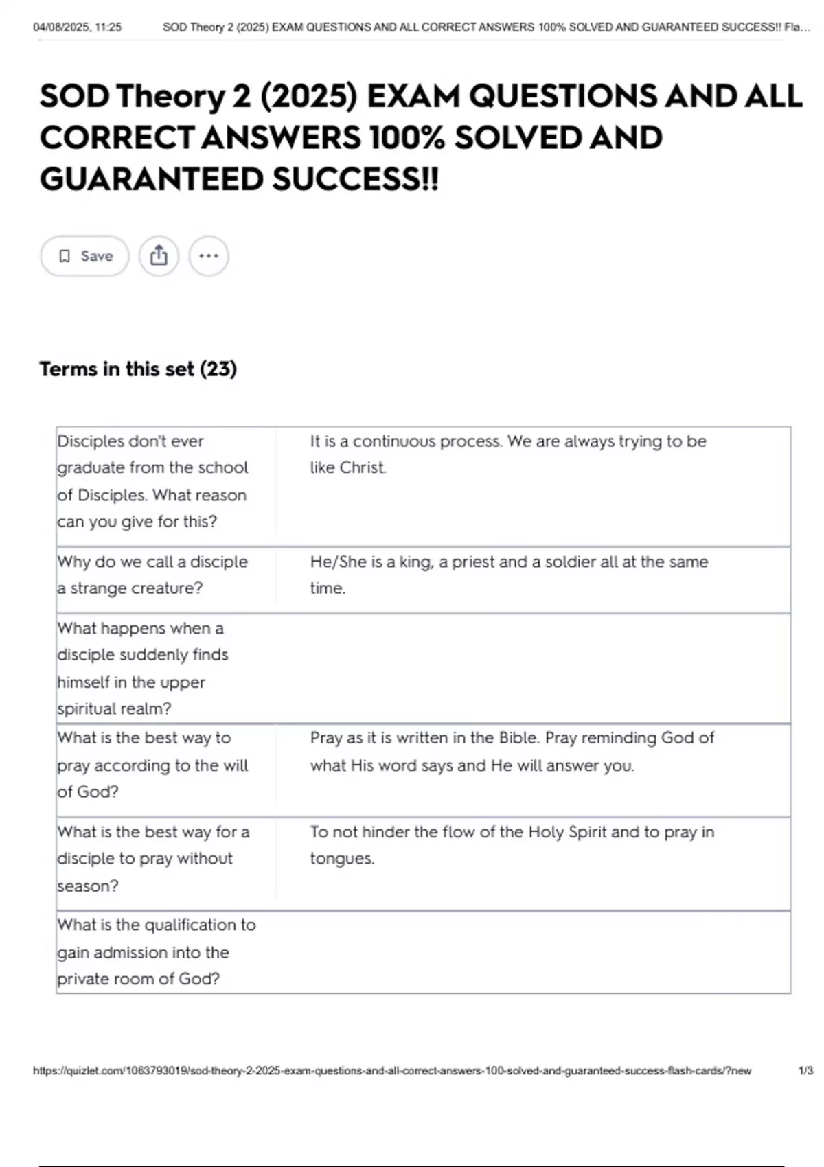 04/08/2025, 11:25 SOD Theory 2 (2025) EXAM QUESTIONS AND ALL CORRECT ANSWERS 100% SOLVED AND GUARANTEED SUCCESS!! Fla…
