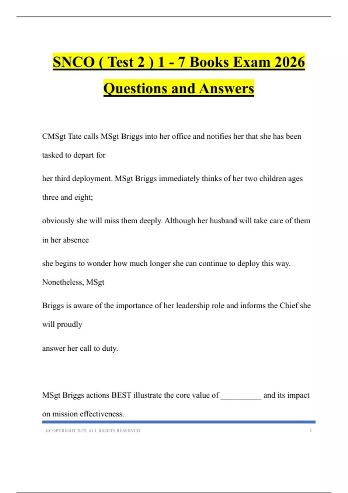 SNCO ( Test 2 ) 1 - 7 Books Exam 2026 Questions and Answers