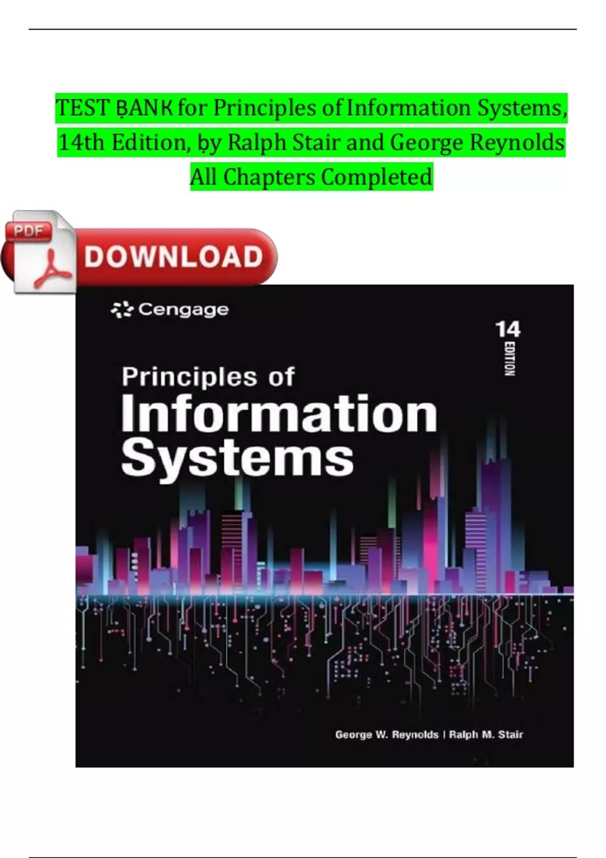 Test Bank For Principles of Information Systems 14th Edition by Ralph Stair All Chapters Fully Covered Latest Newest Version