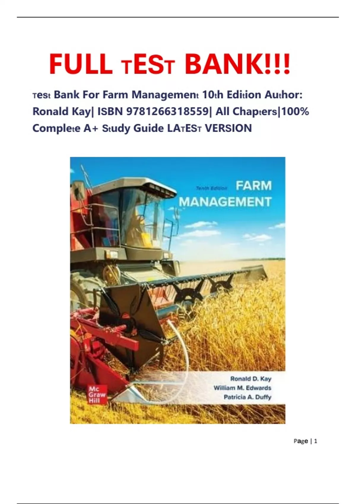 Test Bank For Farm Management 10th Edition Author: