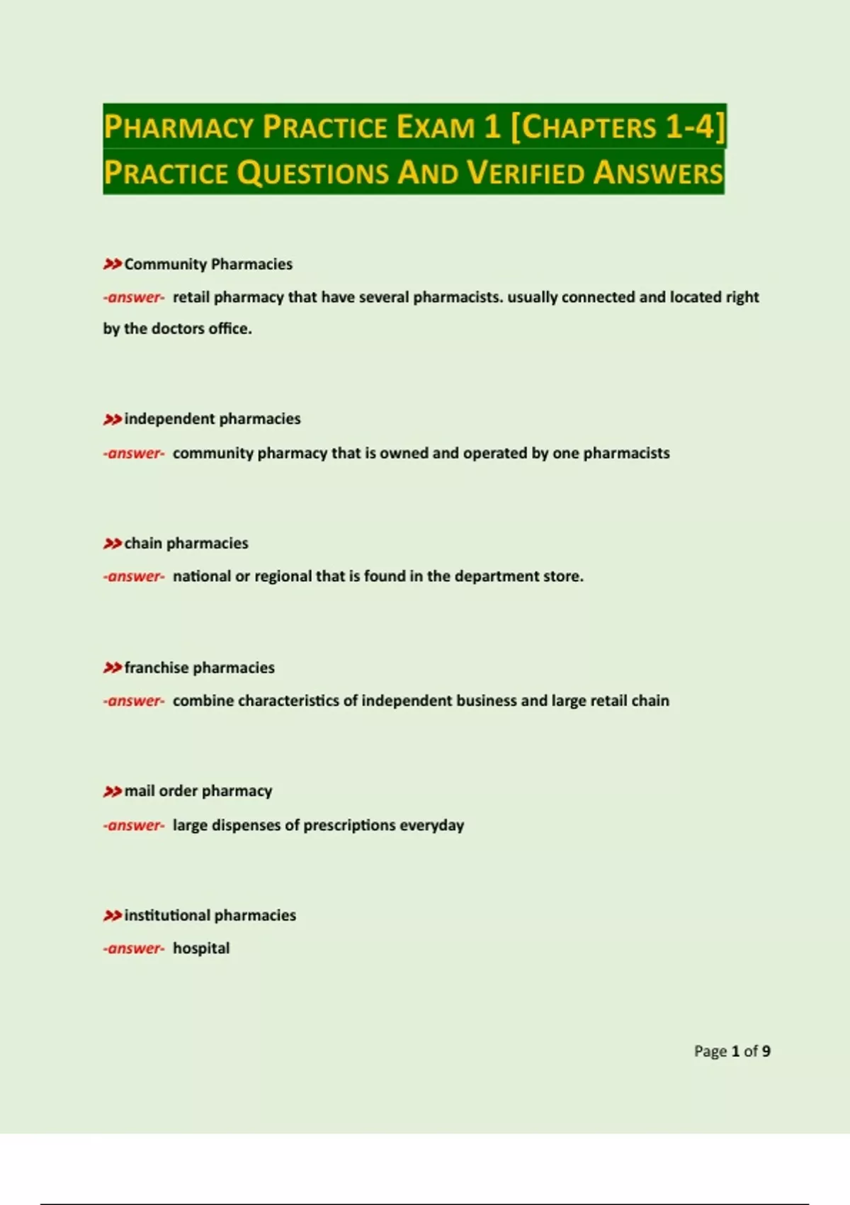 PHARMACY PRACTICE EXAM 1 [CHAPTERS 1-4]