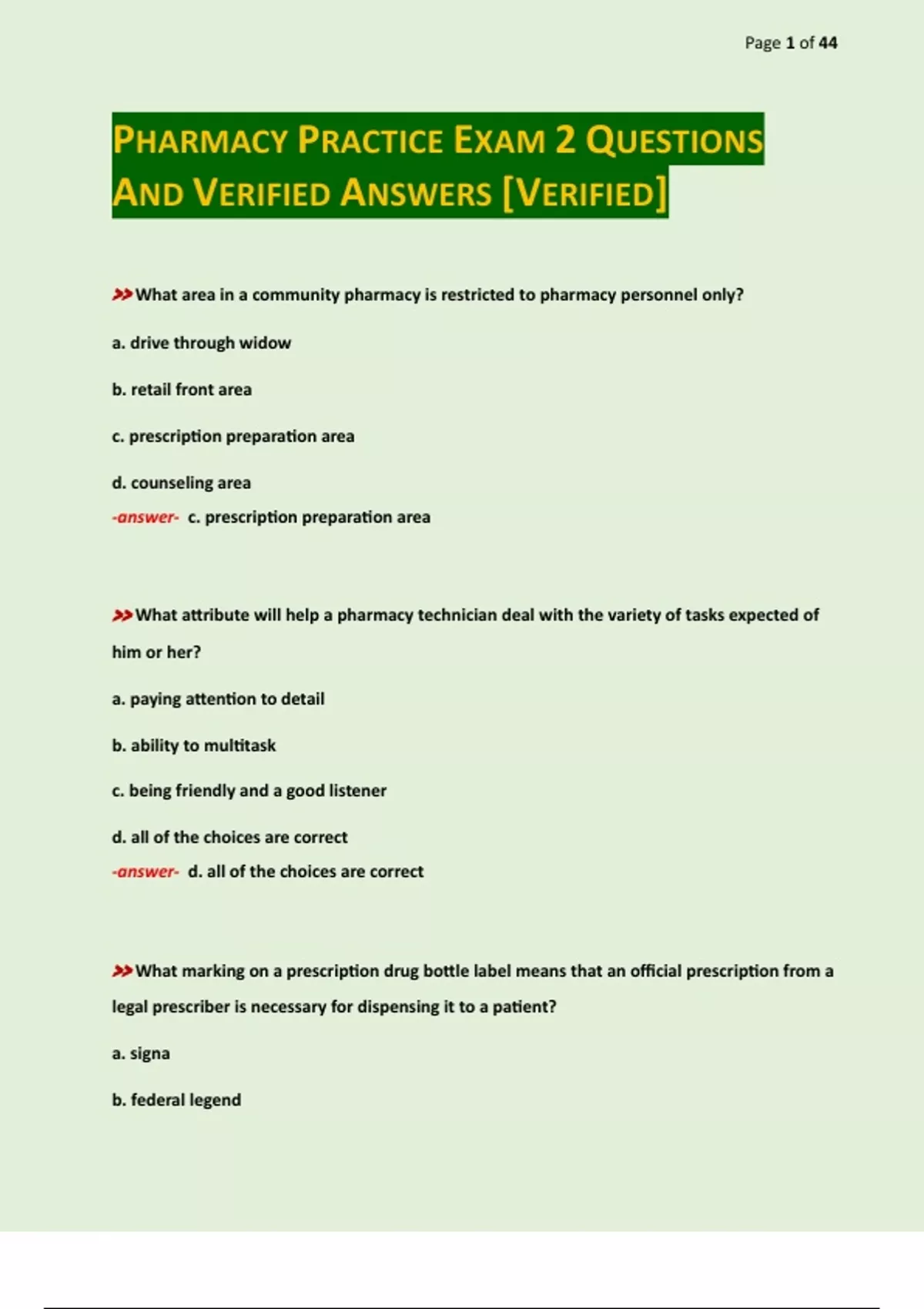 PHARMACY PRACTICE EXAM 2 QUESTIONS