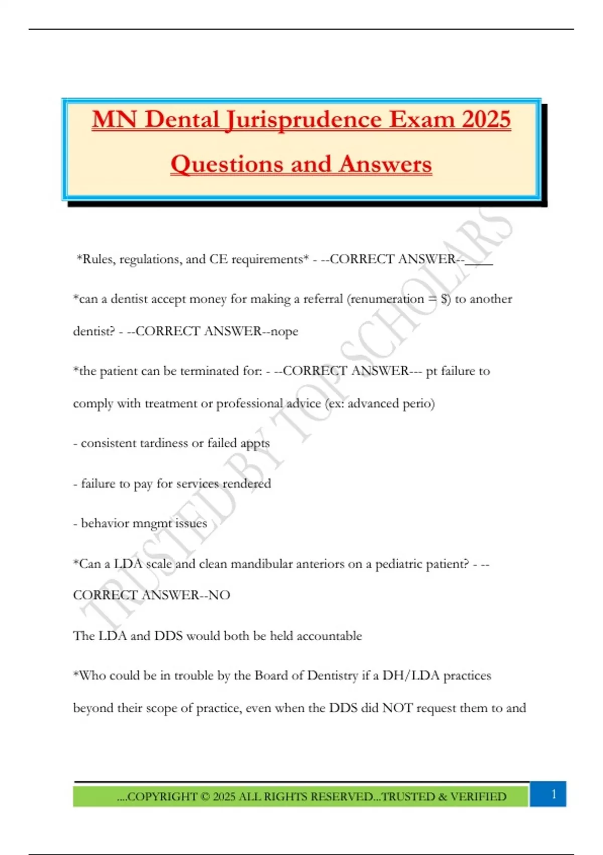 MN Dental Jurisprudence Exam 2025 Questions and Answers
