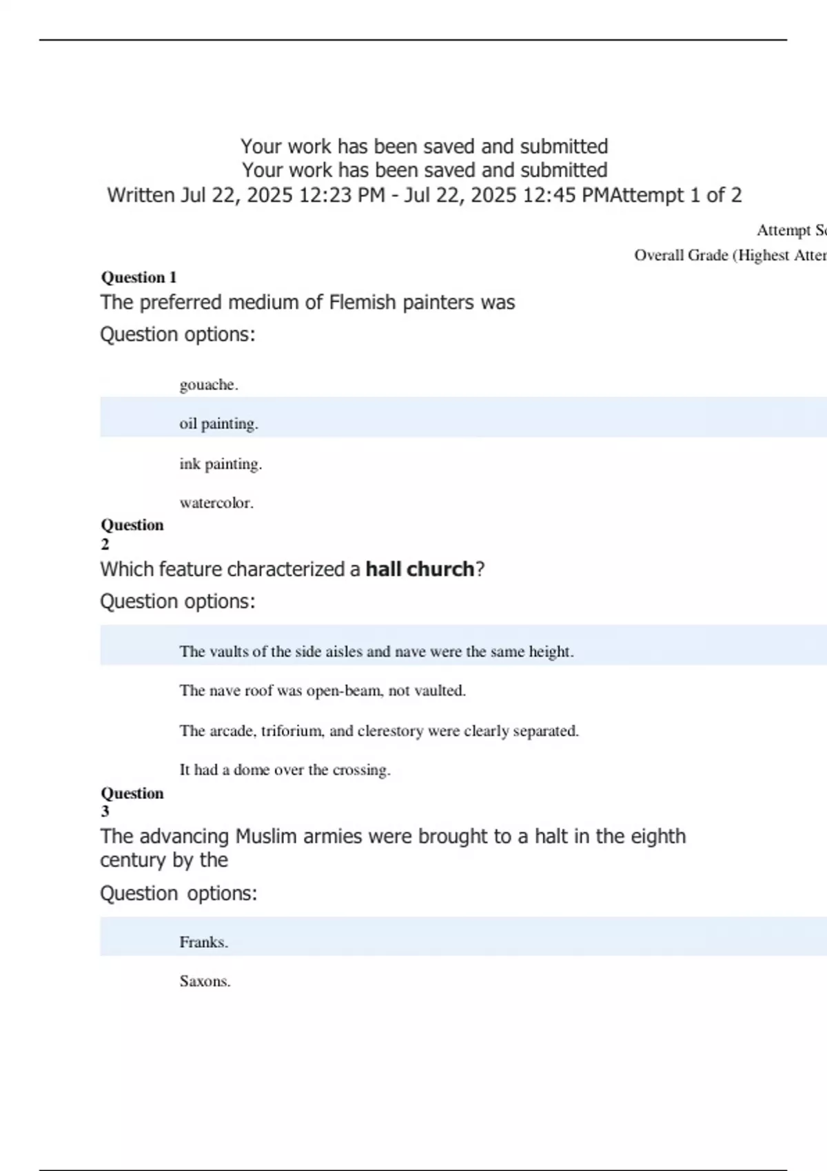 Your work has been saved and submitted