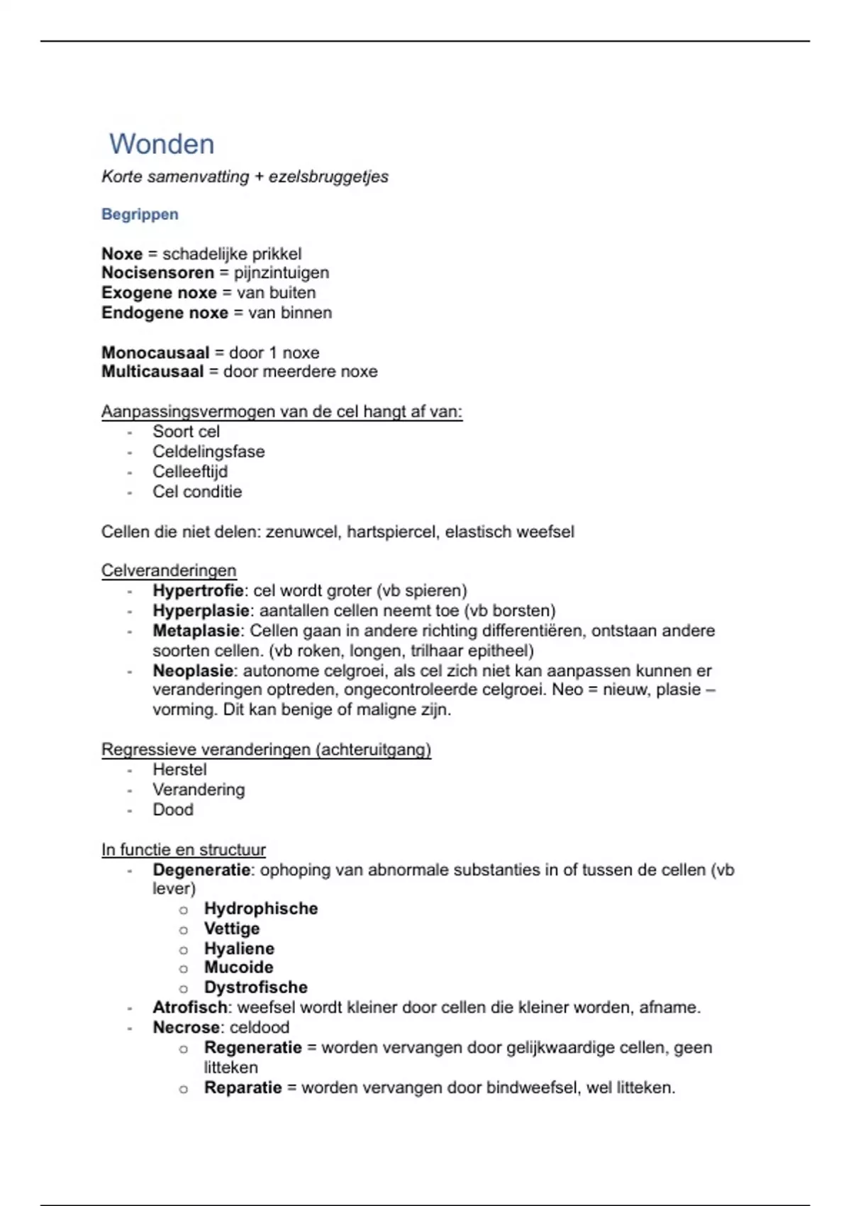 - Degeneratie: ophoping van abnormale substanties in of tussen de cellen (vb