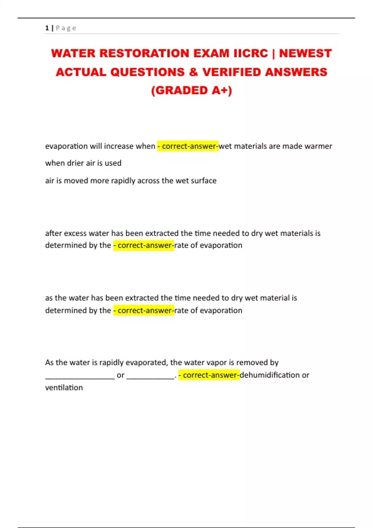 WATER RESTORATION EXAM IICRC | NEWEST ACTUAL QUESTIONS & VERIFIED ANSWERS (GRADED A+)