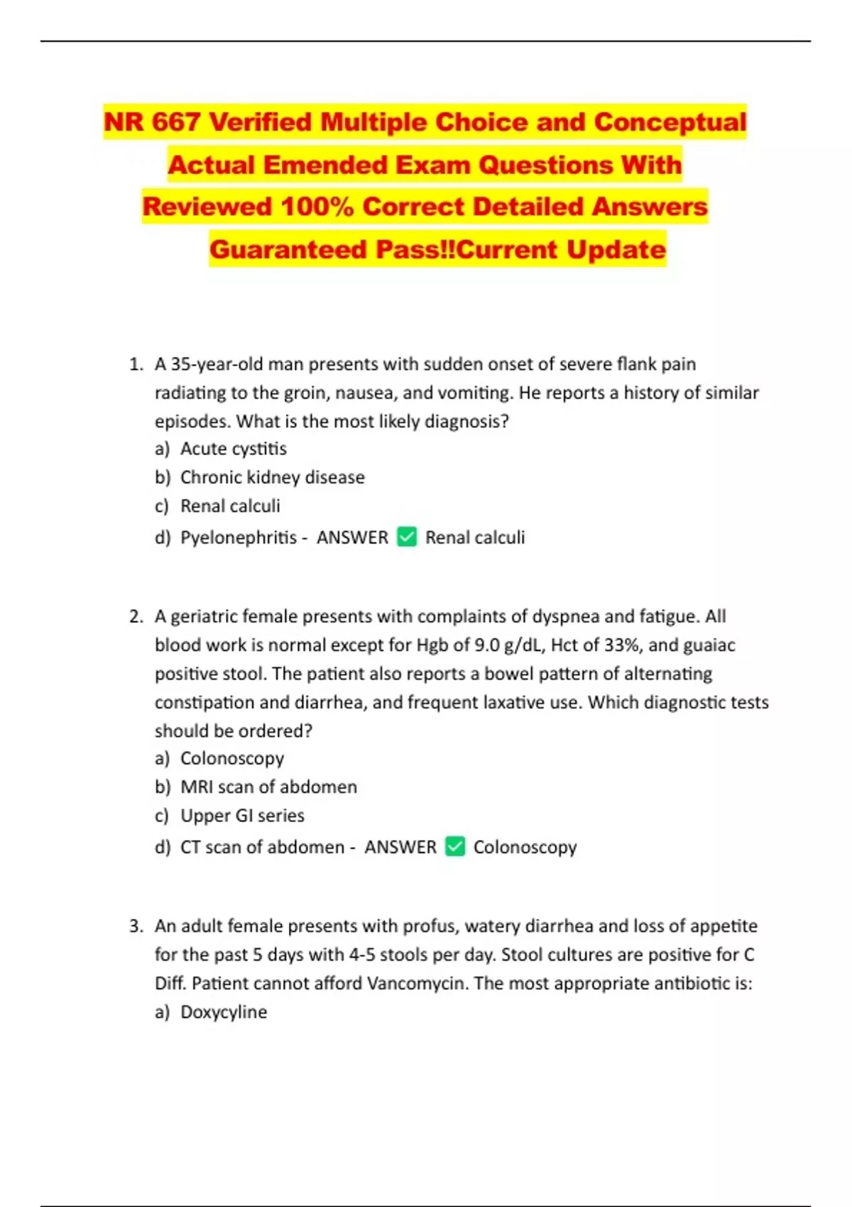 1. A 35-year-old man presents with sudden onset of severe flank pain