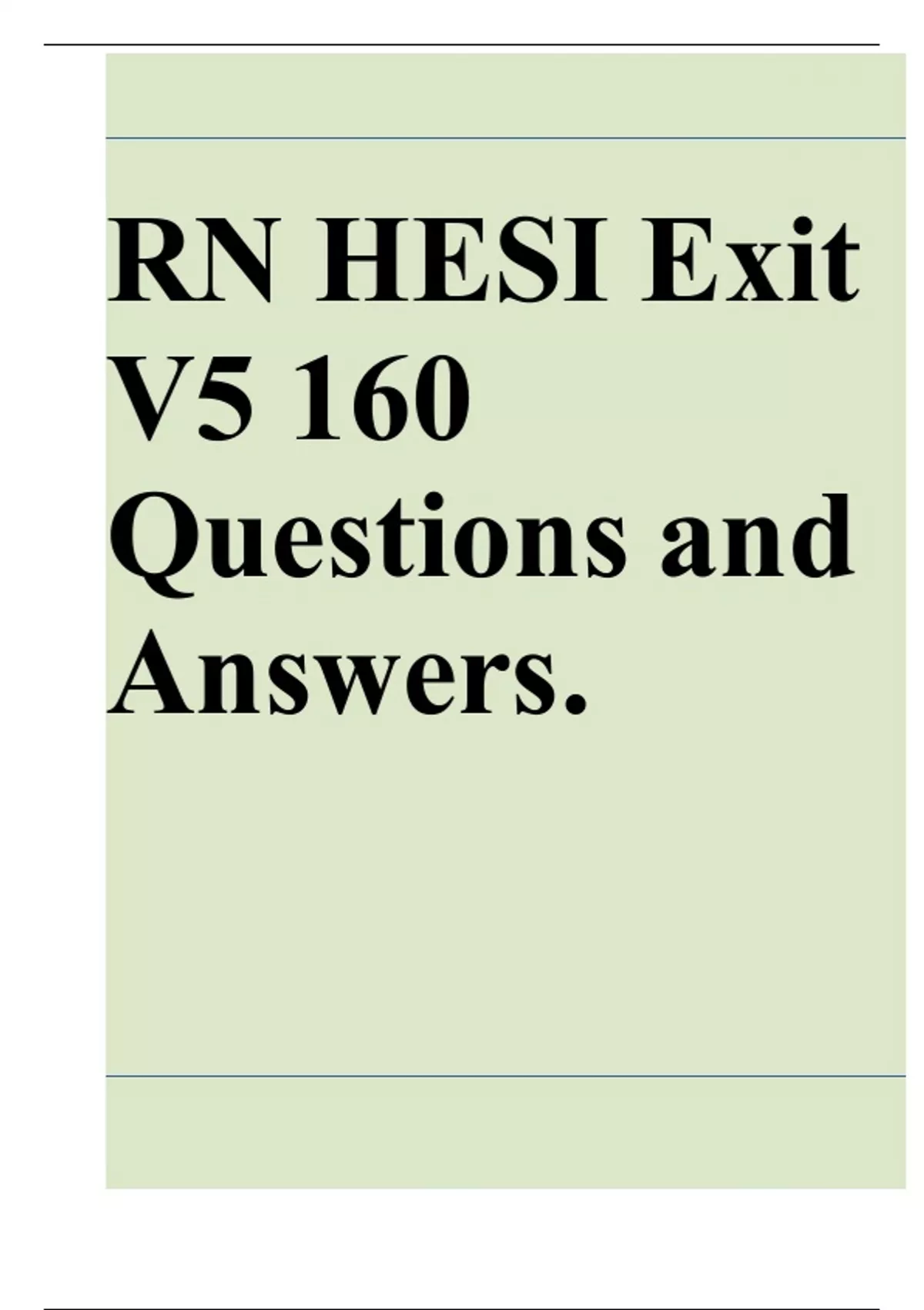 This document includes 160 carefully compiled questions and correct answers for the RN HESI Exit Exam Version 5. Designed to reflect the actual exam format, it is an essential study resource for nursing students preparing for final assessments and NCLEX readiness. Ideal for focused review and self-testing.