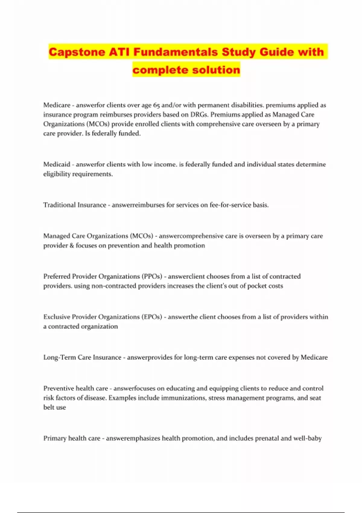 CAPSTONE ATI FUNDAMENTALS STUDY GUIDE WITH COMPLTETE SOLUTION