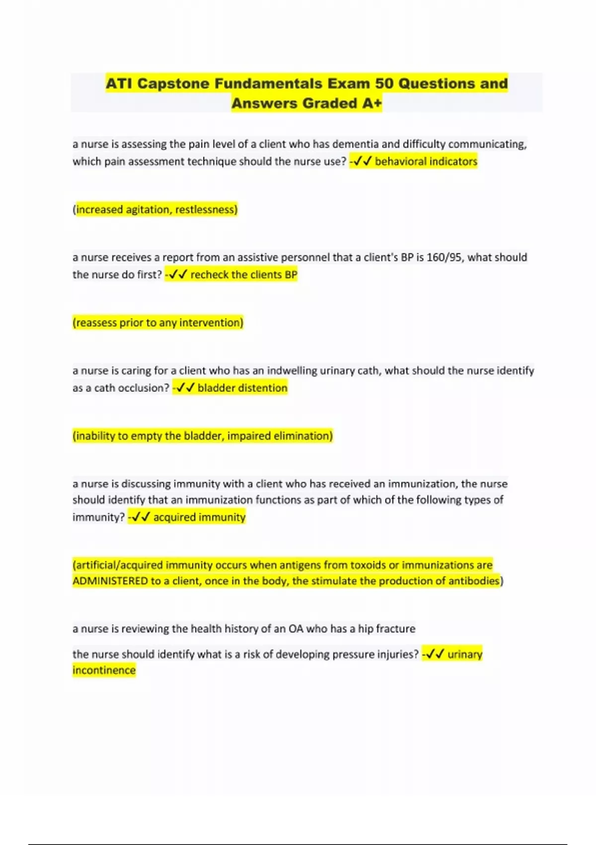 ATI CAPSTONE FUNDAMENTALS EXAM 50 QUESTIONS AND ANSWERS GRADED A+