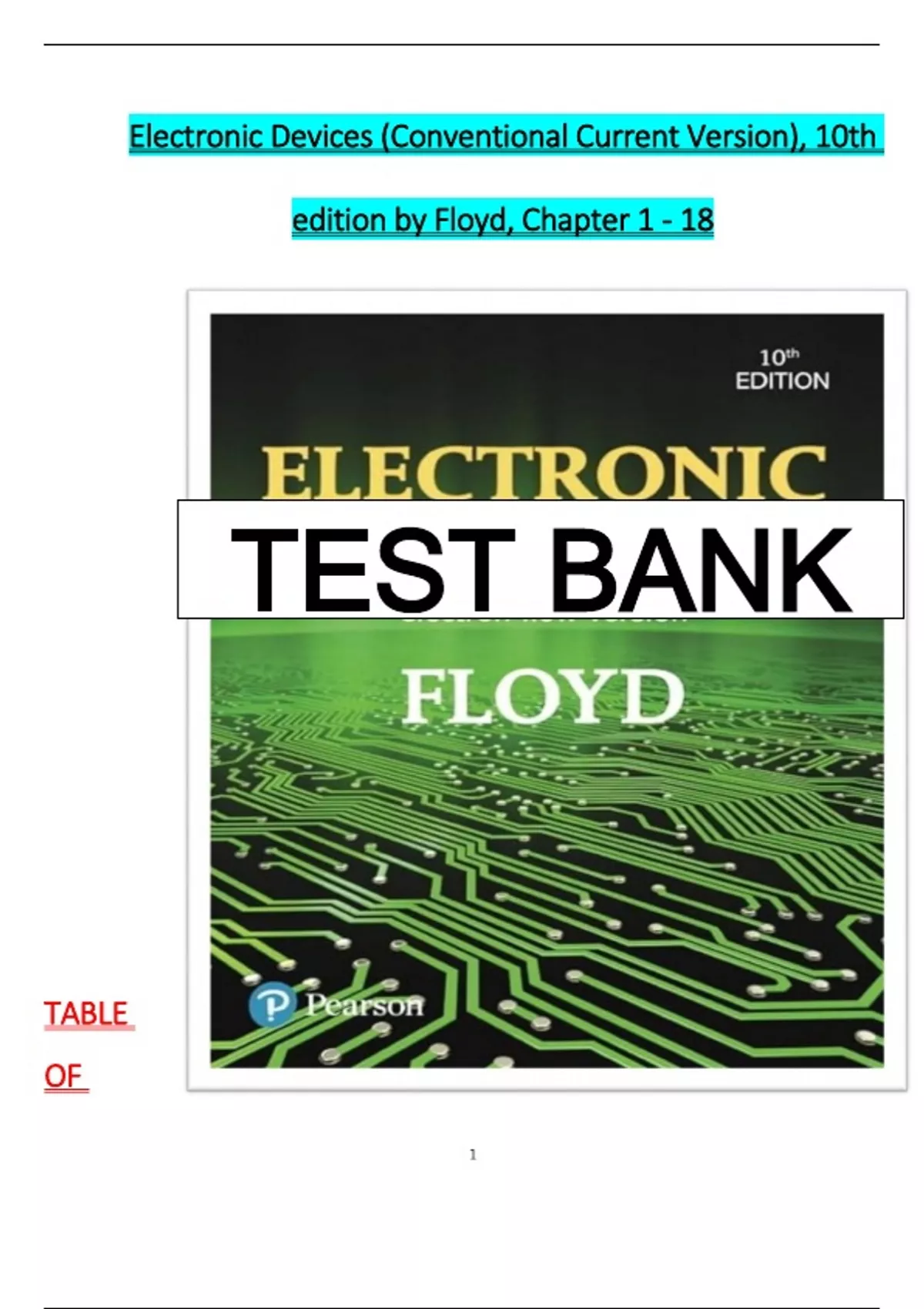 TEST BANK for Electronic Devices Conventional Current Version 10th Edition by Thomas L. Floyd All Chapters 1 to 18 GRADED A+