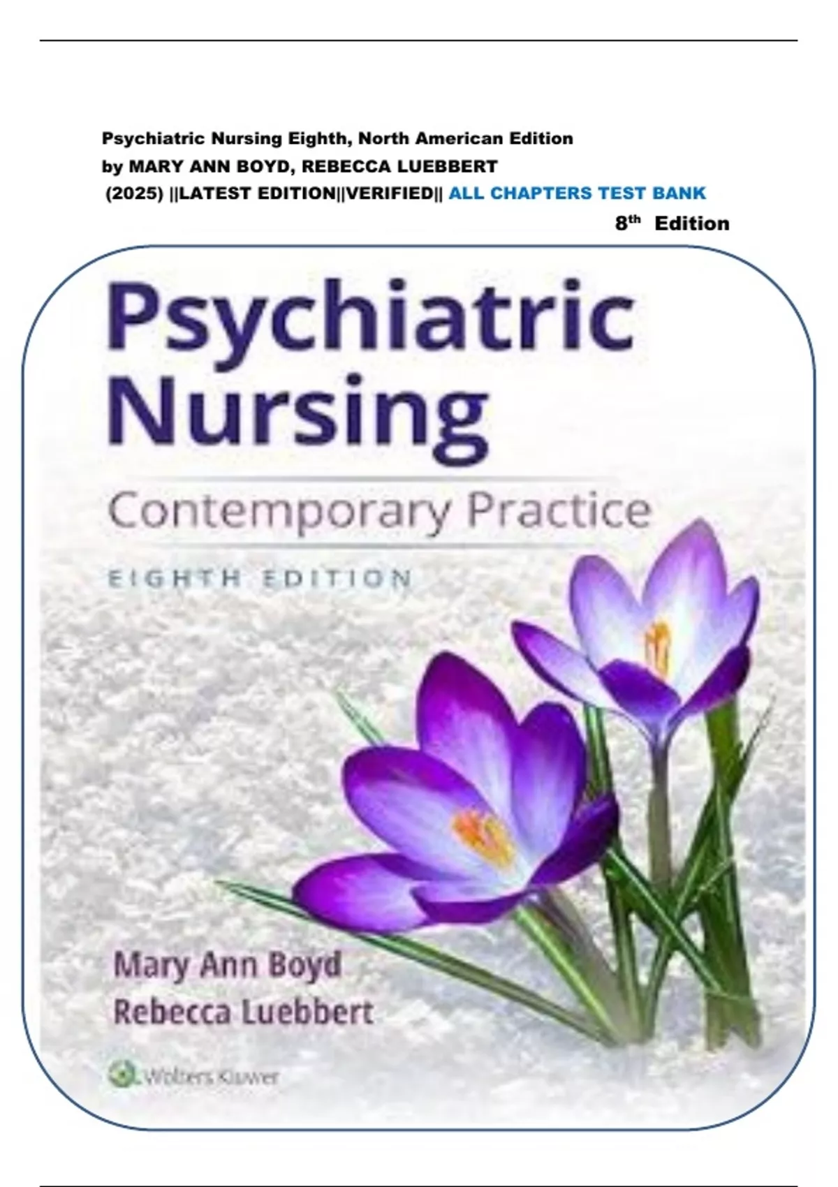Psychiatric Nursing Eighth, North American Edition by MARY ANN BOYD, REBECCA LUEBBERT (2025) ||LATEST EDITION||VERIFIED|| ALL CHAPTERS TEST BANK Psychiatric Nursing Eighth, North American Edition by MARY ANN BOYD, REBECCA LUEBBERT (2025) ||LATEST EDITION||VERIFIED|| ALL CHAPTERS TEST BANK