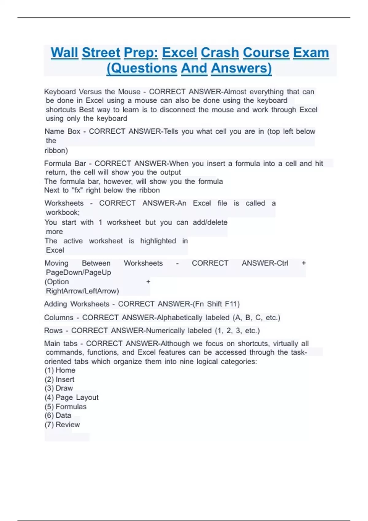 Wall Street Prep: Excel Crash Course Exam (Questions And Answers)