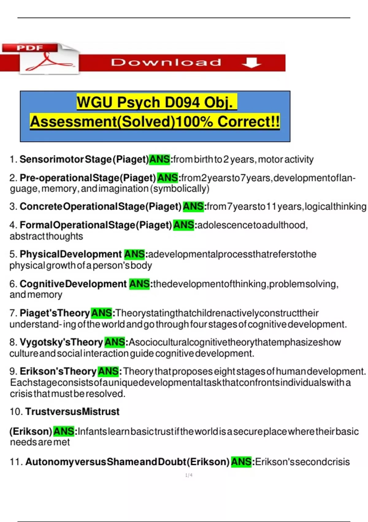 WGU Psych D094 Obj. Assessment(Solved)100% Correct!!WGU Psych D094 Obj. Assessment(Solved)100% Correct!!WGU Psych D094 Obj. Assessment(Solved)100% Correct!!